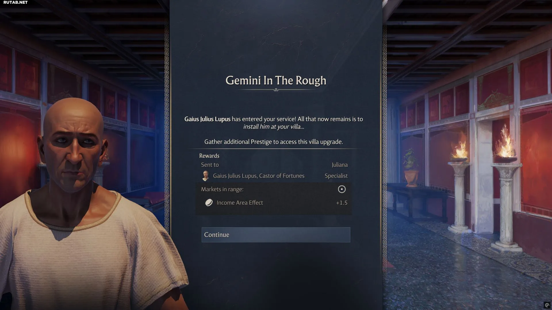Гай повышает доход в зоне своего влияния. Он станет отличным помощником, если вы испытываете финансовые трудности. Отрицательный баланс постоянно сокращает ваши денарии, что может привести к долгам и поражению в игре.