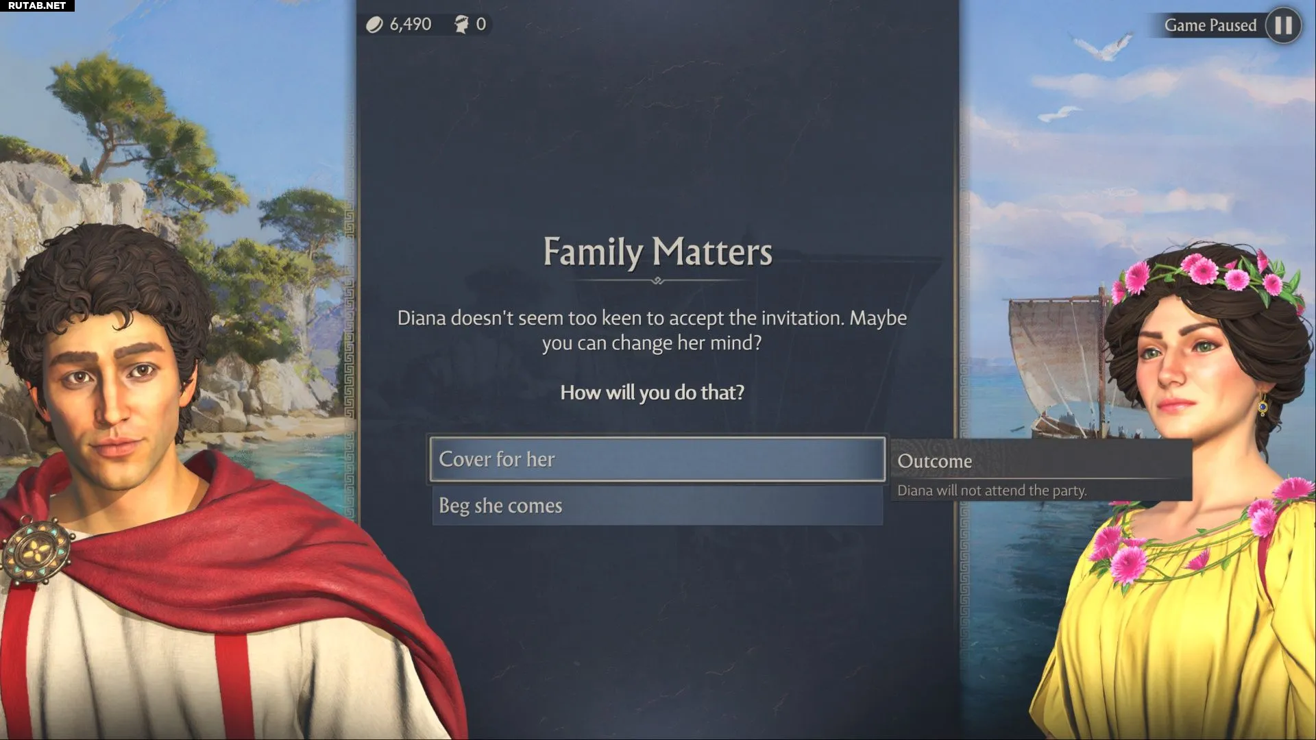 Сюжеты Марка и Марции развиваются в разных «вселенных». Если выбрать Марка, Марция всё равно отправится замуж, но управлять Виллой Августа и островом Юлиана будет именно Марк. Ключевые события (например, день рождения Юлии или поиск Дианы) останутся, но подача и контекст изменятся.