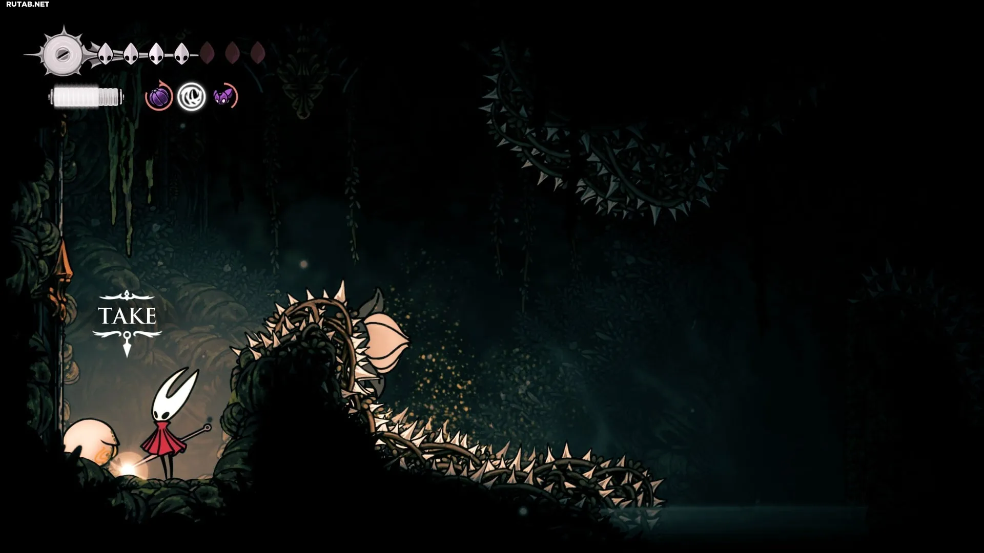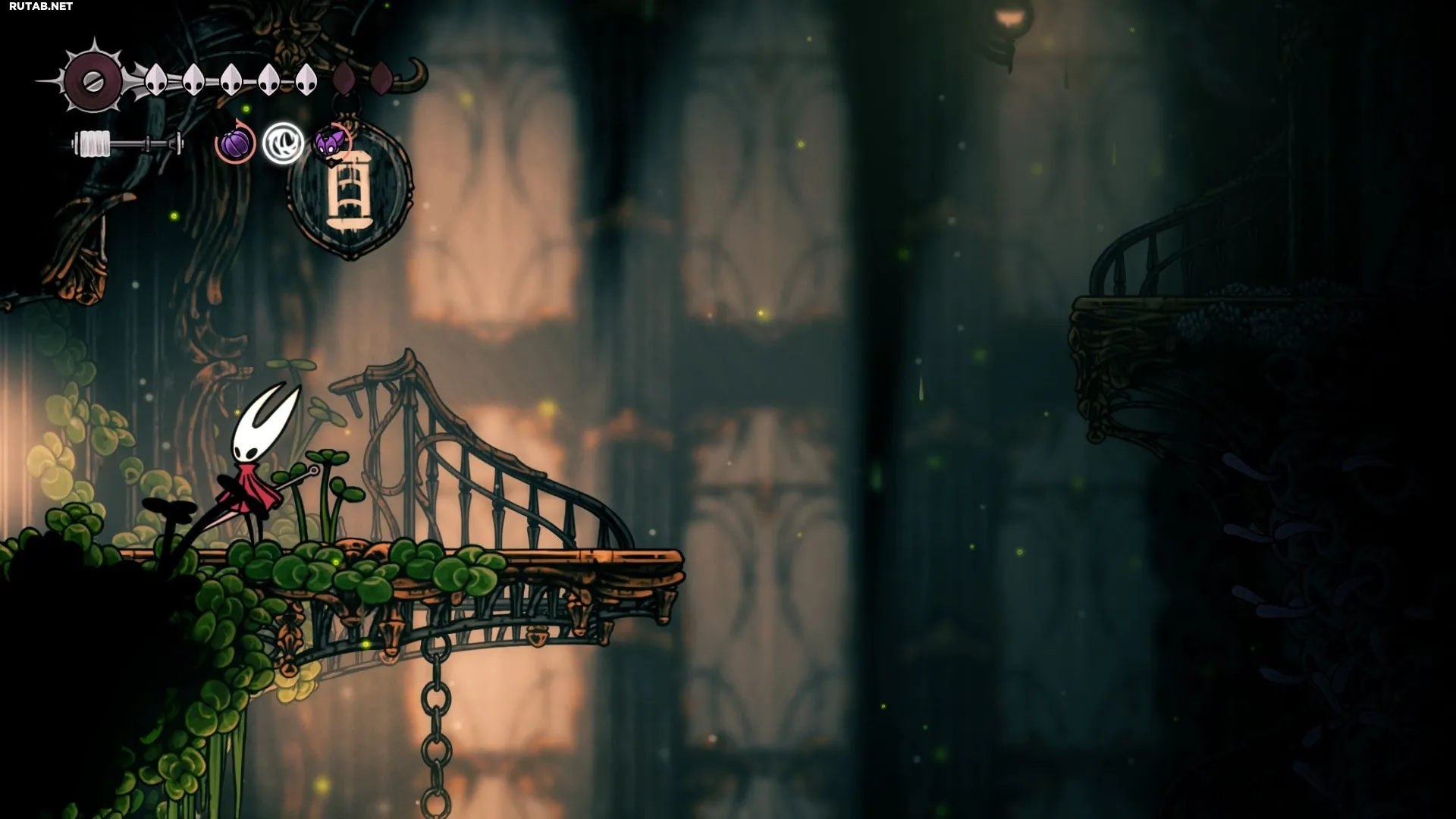 Внизу этого прохода справа на полу есть лианы, которые можно уничтожить — это позволит быстро подняться сюда, если вы умрёте и возродитесь у скамьи!