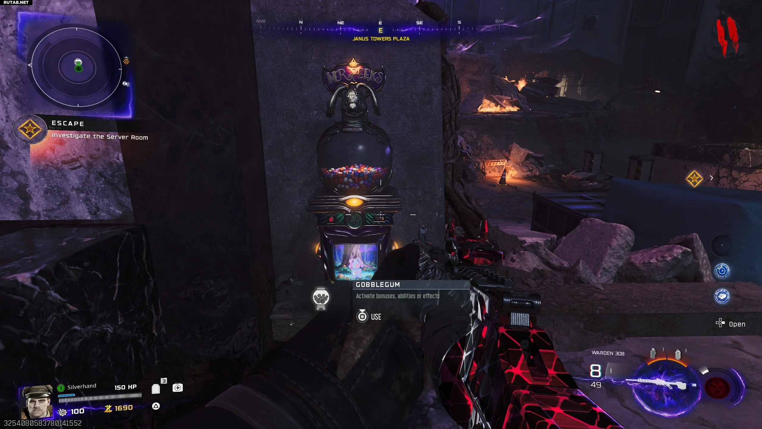 Когда у вас есть свободный слот для гобблгама (отображается справа на HUD), вы можете подойти к автомату с гобблгамами. Эти автоматы находятся в разных локациях карты Zombies и отмечены на миникарте специальным символом. Взаимодействуя с автоматом, вы получите случайную гобблгаму из вашего набора из 5 штук, которую можно взять или оставить. Даже если вы взяли гобблгаму, она не считается использованной, пока вы её не прожуёте, поэтому можете спокойно совершать эксфил или погибать с гобблгамами в инвентаре.