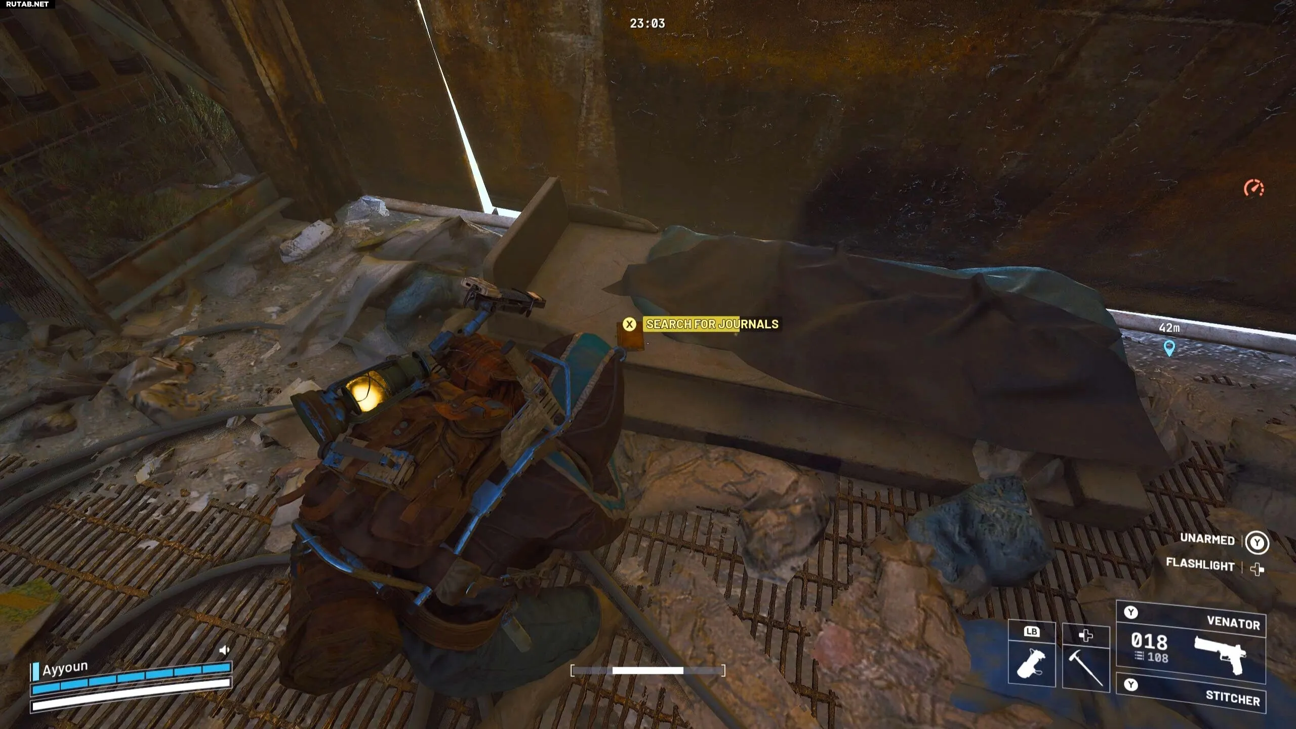 Первый журнал находится в Южном Болотном аванпосте к западу от здания Управления водоподготовки на карте «Поля сражений у плотины». По пути стоит собирать инъекции адреналина, чтобы легче управлять выносливостью.