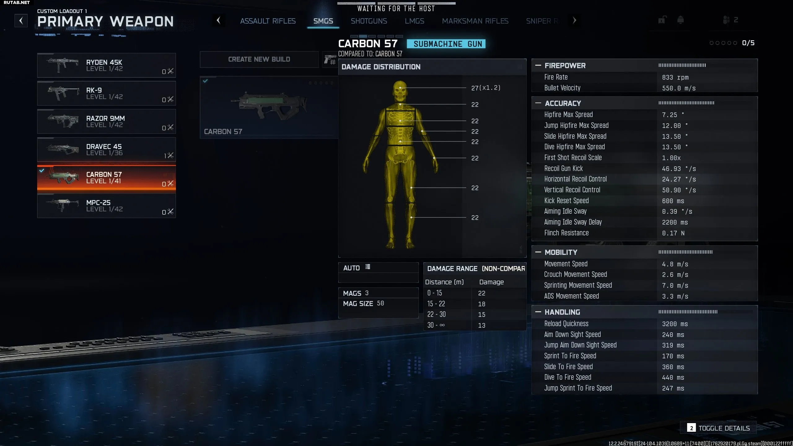 Carbon 57, ранее известный как PDW 57, был и остаётся вполне компетентным представителем класса пистолетов-пулемётов. Он обладает невероятно большим для своего класса боезапасом — 50 патронов в магазине. Огневая мощь достойная, как и эффективная дистанция стрельбы. Однако урон оставляет желать лучшего, поэтому для устранения противника потребуется на несколько пуль больше. Это компенсируется хорошо контролируемой отдачей, что выделяет его в боях на дистанциях, превышающих ближний бой.
