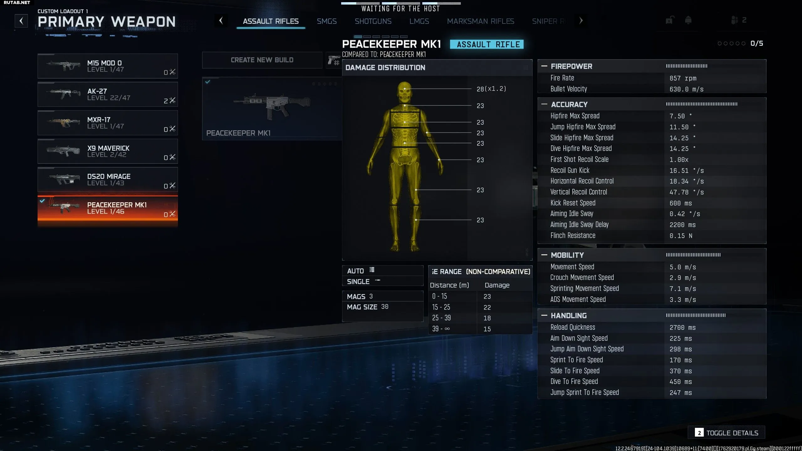 Peacekeeper будет уступать другим штурмовым винтовкам на средней дистанции, но превосходно проявляет себя благодаря отличной мобильности — оружие очень лёгкое и маневренное для тактики «беги и стреляй». Peacekeeper Mk1 чрезвычайно эффективен в ближнем бою и на картах с узкими коридорами, но значительно проигрывает на открытых пространствах из-за сильной отдачи.