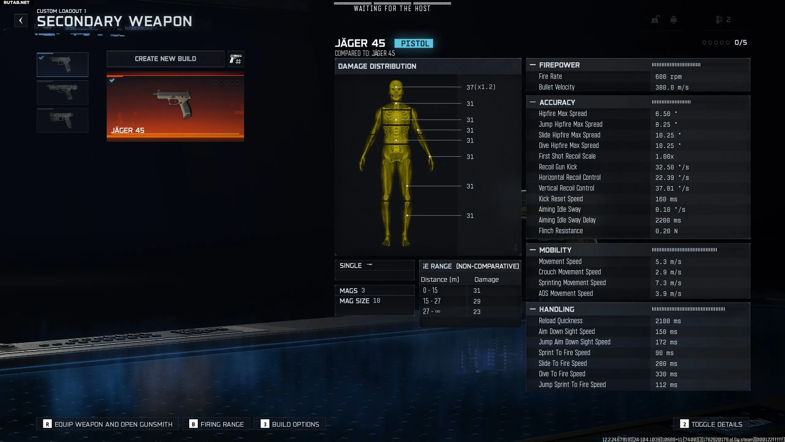 Tac-45 превратился в Jager 45 Pistol — первый пистолет, доступный игрокам с самого начала игры. Хотя пистолеты редко используются в качестве основного оружия, Jager 45 отлично справляется со своей задачей. Он может выручить в ближнем бою, если у основного оружия закончились патроны или оно неэффективно на короткой дистанции. Высокая скорострельность и низкая отдача делают его удобным запасным вариантом.