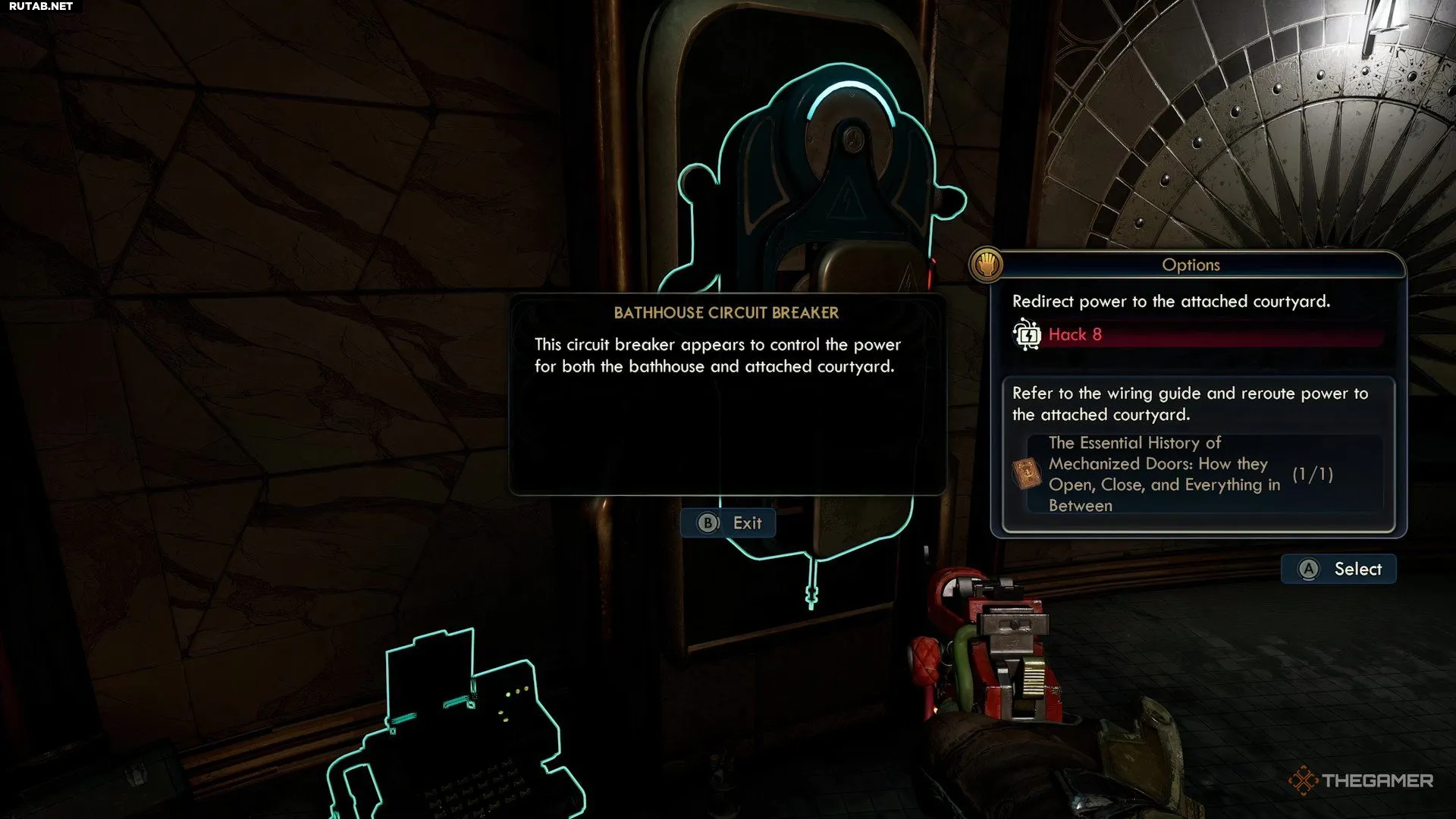 Вы можете мгновенно открыть дверь, пройдя проверку навыка Взлом 8, либо вернуться к Брун, которая сразу же даст вам книгу «Основы истории механизированных дверей: как они открываются, закрываются и всё остальное» для решения проблемы.