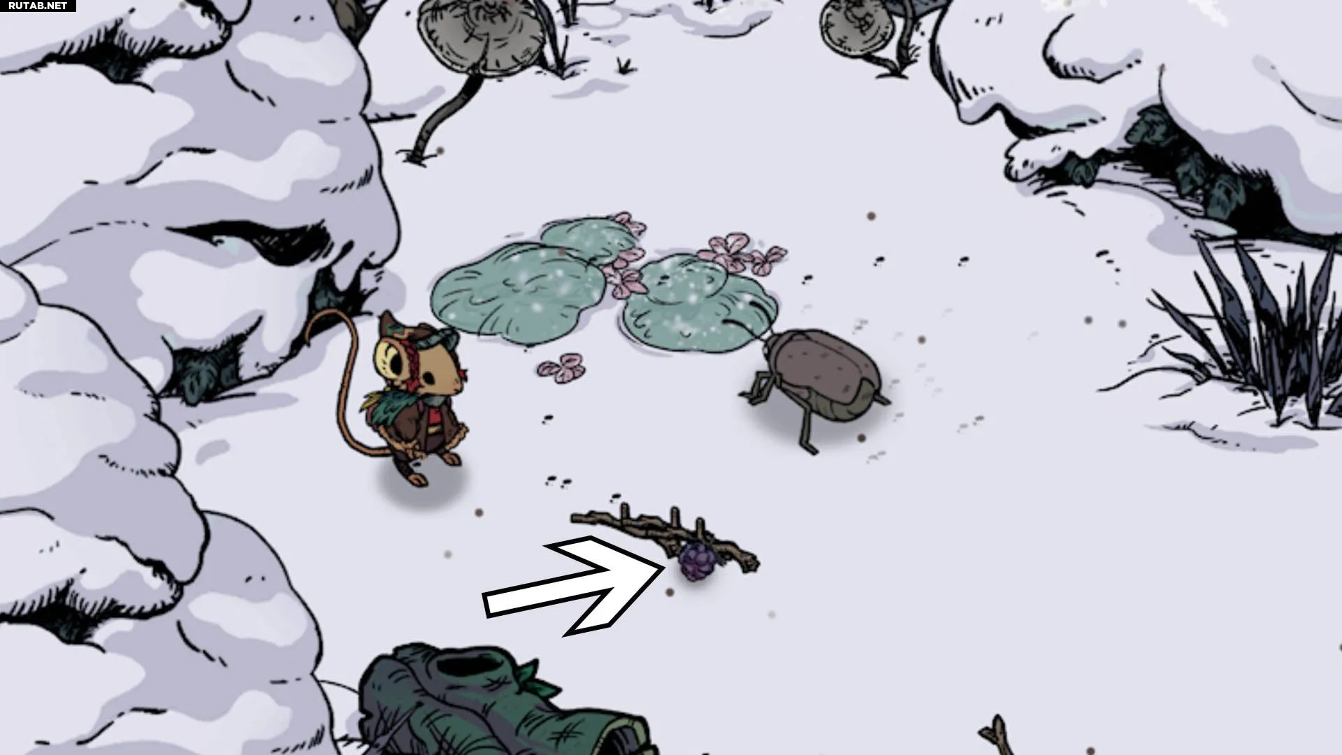 На данный момент мы выяснили, что лучшее место для сбора ежевики в Winter Burrow — это территория между домом Тетушки и домом Буфо. Здесь мы регулярно находили ягоды на земле, а также получали их, срубая колючие кусты ежевики.