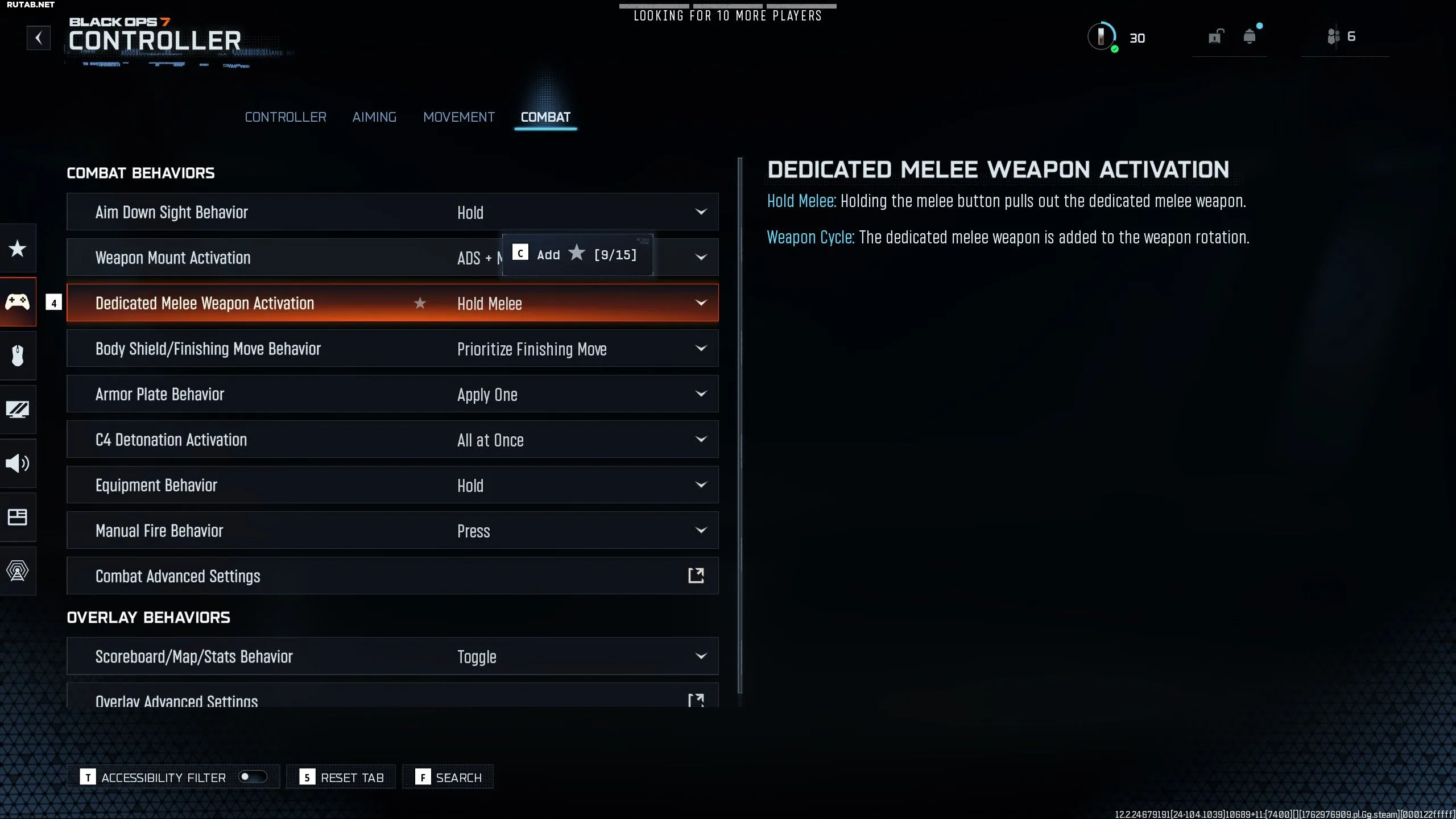 - Выбрать между «Удерживать для ближнего боя», «Цикл оружия» или «Специальная клавиша»