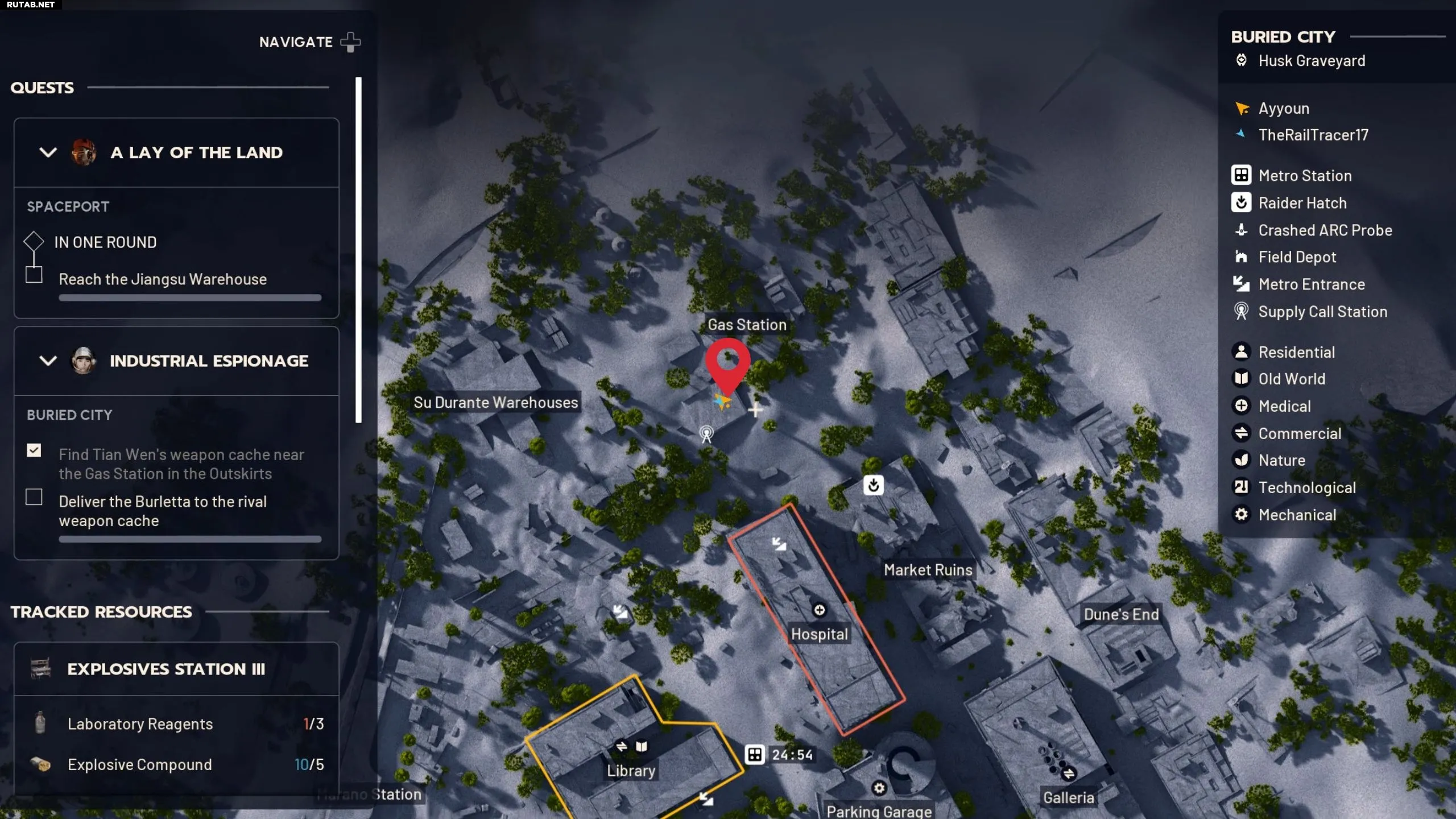 Заправка находится на открытой местности, что делает вас уязвимым для вражеских рейдеров, особенно из здания больницы — одного из центров PvP-активности в Забытом городе. Двигайтесь осторожно и избегайте столкновений с машинами ARC, чтобы не привлекать лишнего внимания.