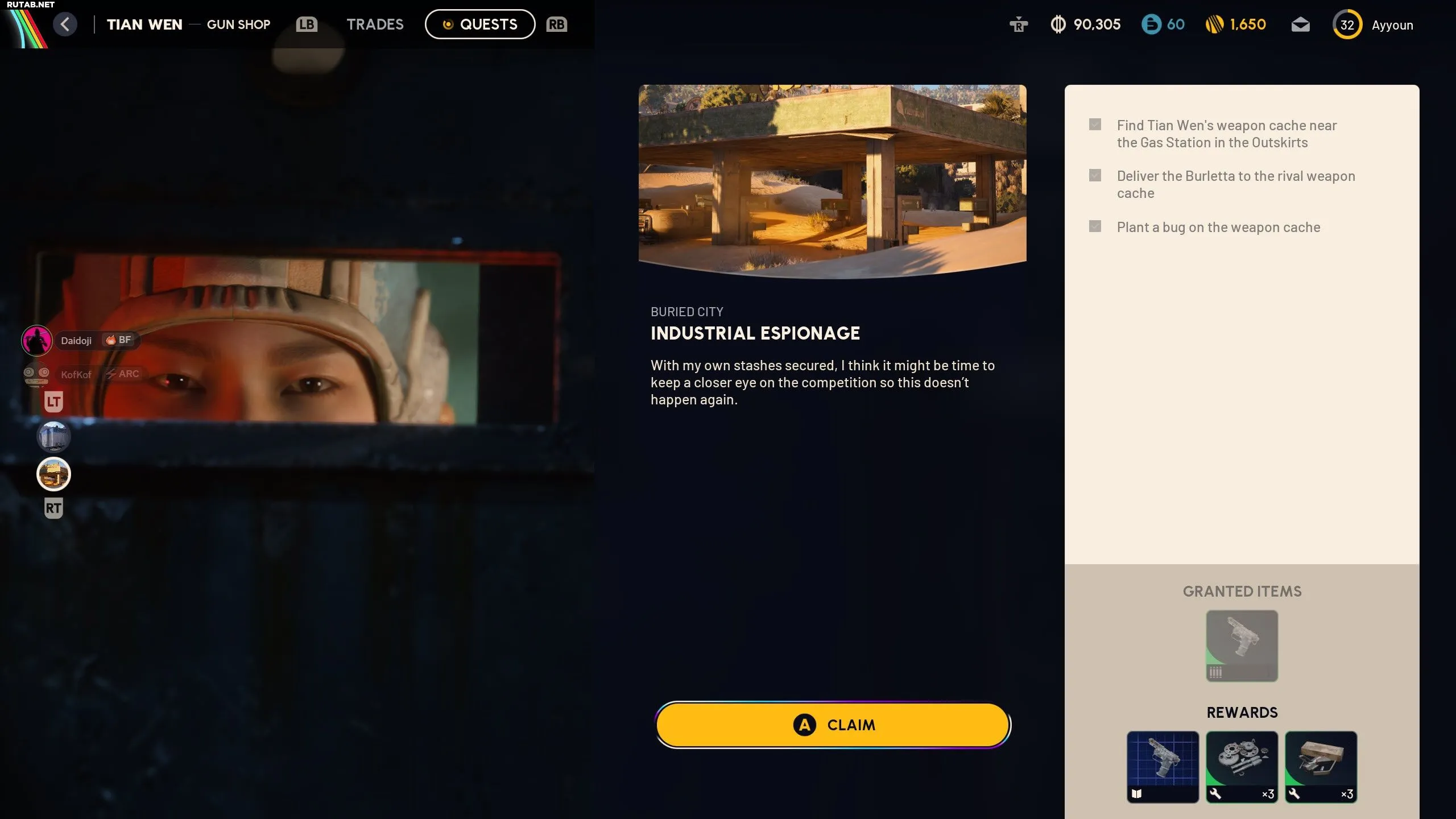 Перед выполнением задания убедитесь, что пистолет Burletta, выданный Тянь Вэнь, находится в вашем инвентаре. Возьмите с собой другое второстепенное оружие, так как Burletta понадобится для завершения квеста. В противном случае придётся эвакуироваться и повторить попытку.
