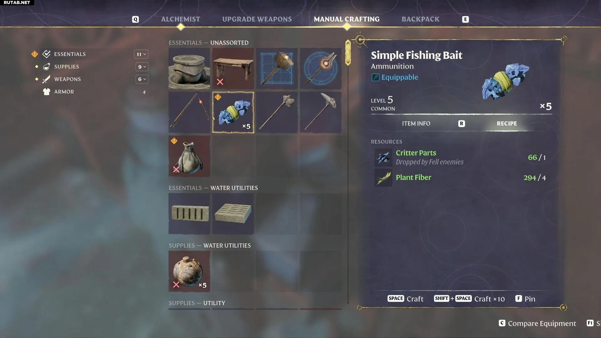 Приманка привлекает определенные виды рыб в разных биомах. Нужно собирать мелких существ (насекомых, амфибий) по всему Эмбервейлу и создавать из них приманки по рецептам.