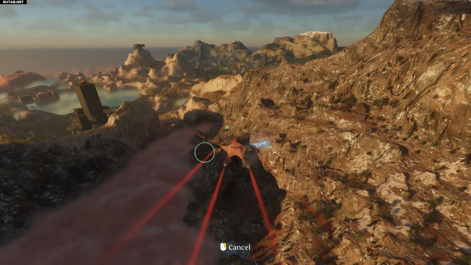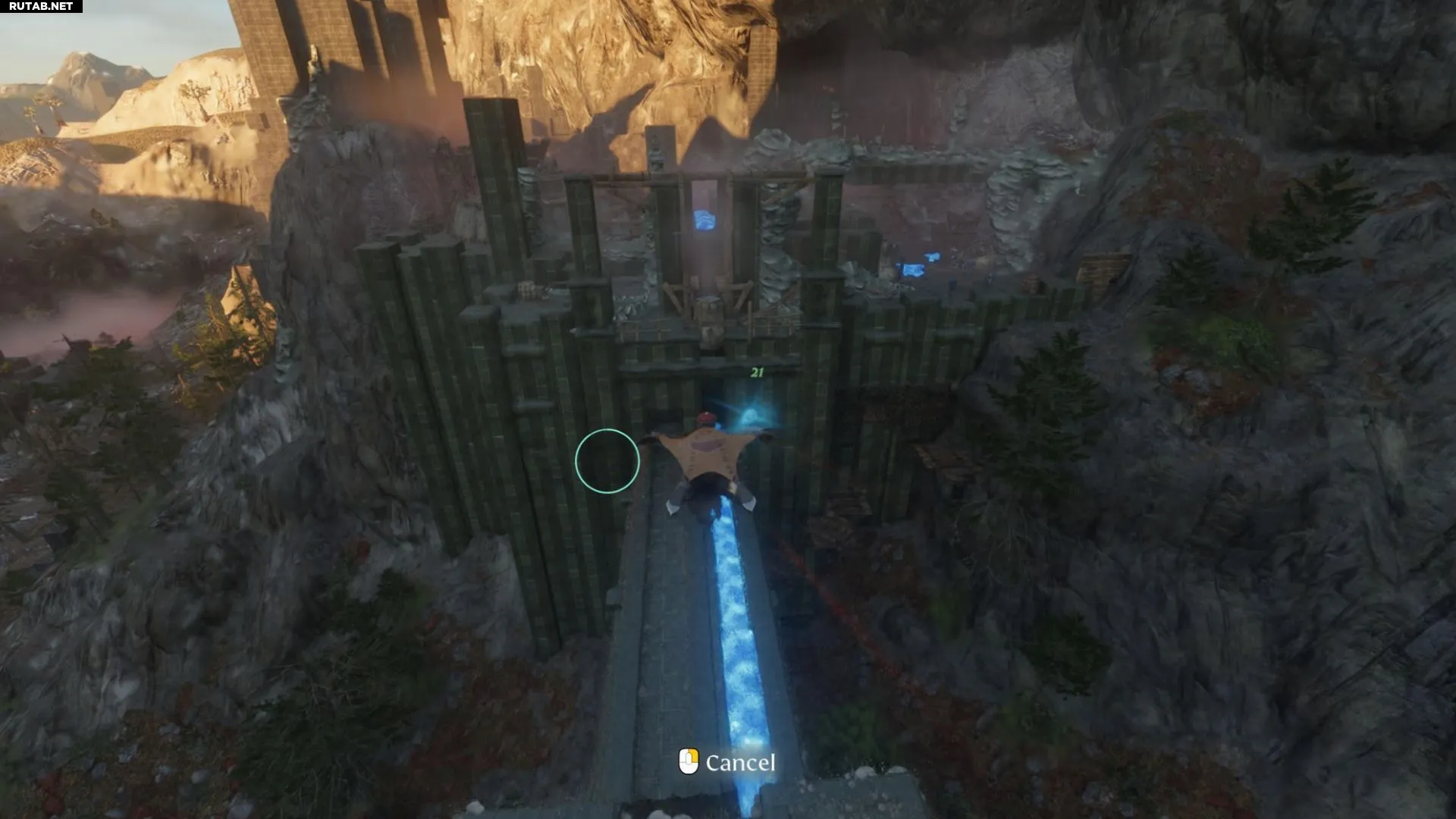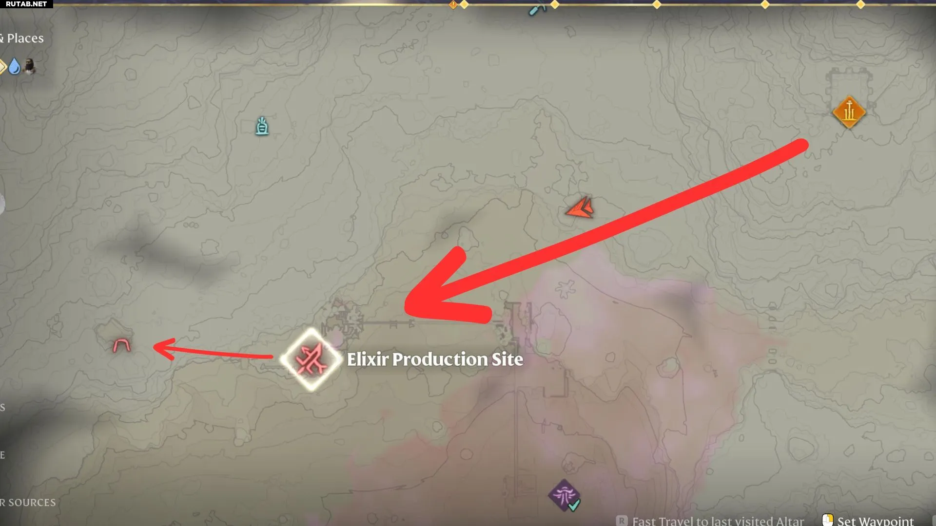 Далее наденьте планер и летите прямо на юго-запад к Заводу по производству эликсира одним плавным полетом. Эта остановка служит промежуточным пунктом между Вершинами Албанив и Бассейном Вейлвотер.