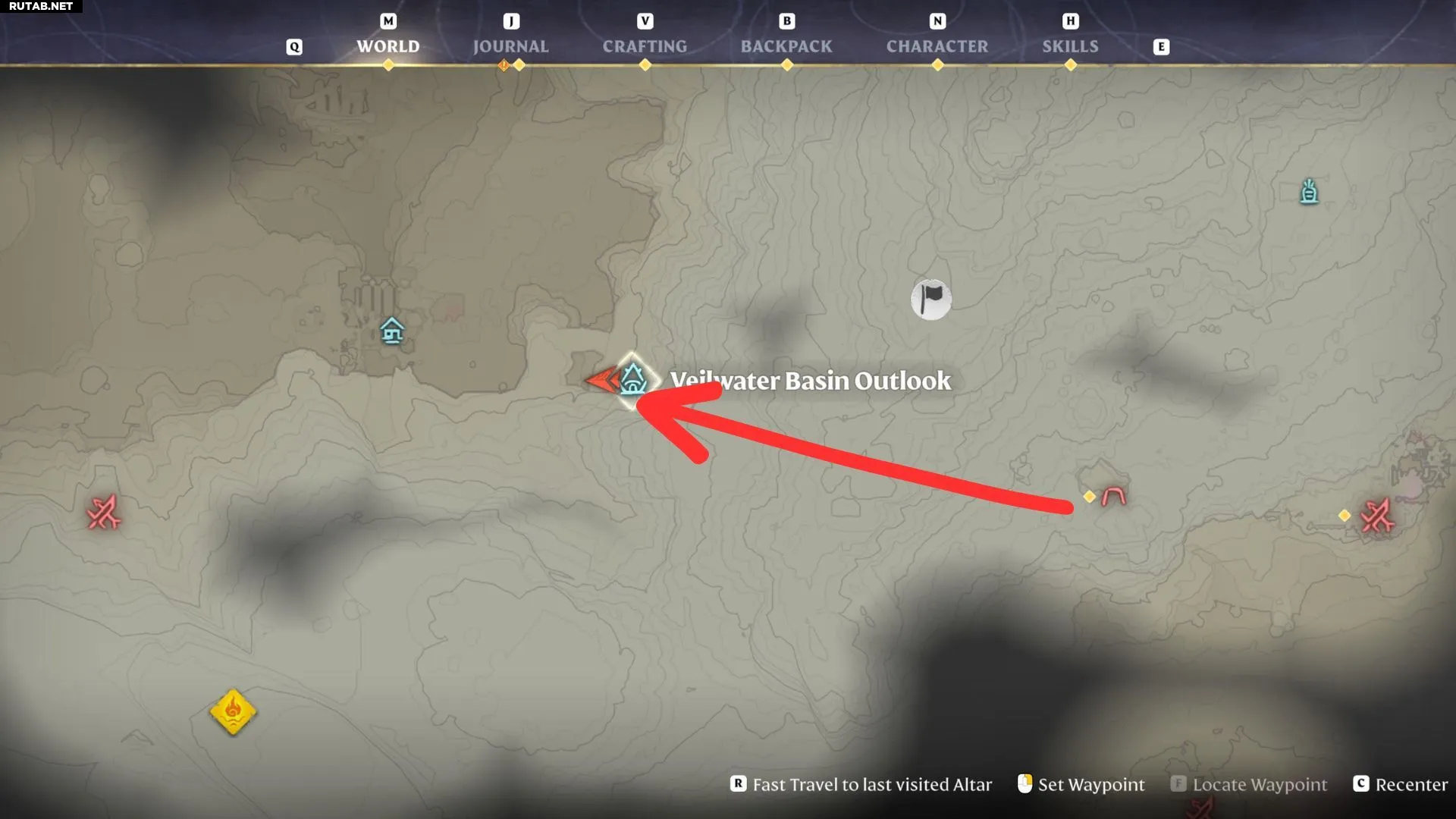Самый простой и прямой способ попасть в Бассейн Вейлвотер — начать путь от Древнего Шпиля - Вершины Албанив. Эта высокая точка обзора идеально подходит для планирования на юго-запад к вашей цели.