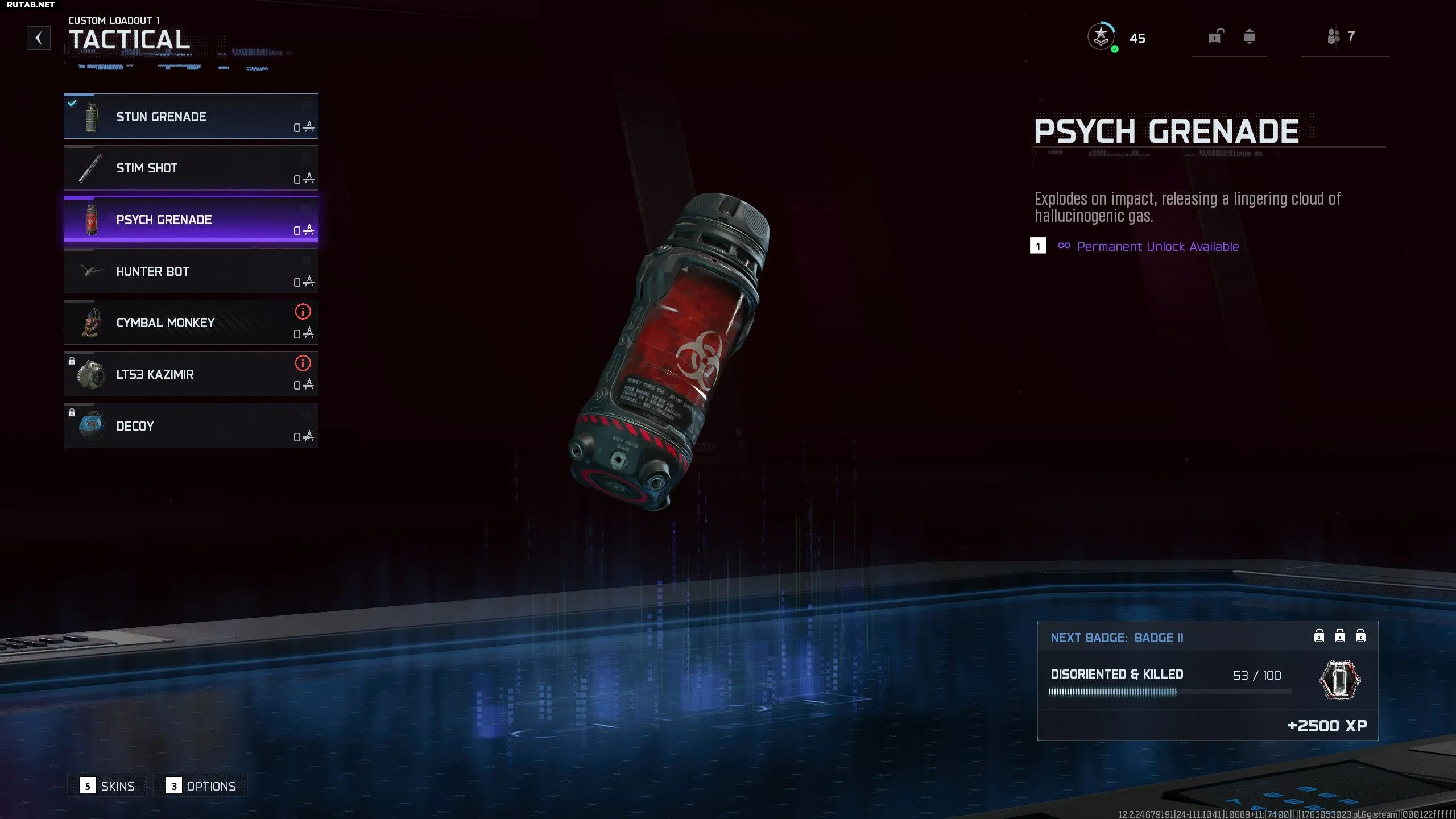 | Оглушающая граната | Уровень 1 | 250 утиля |