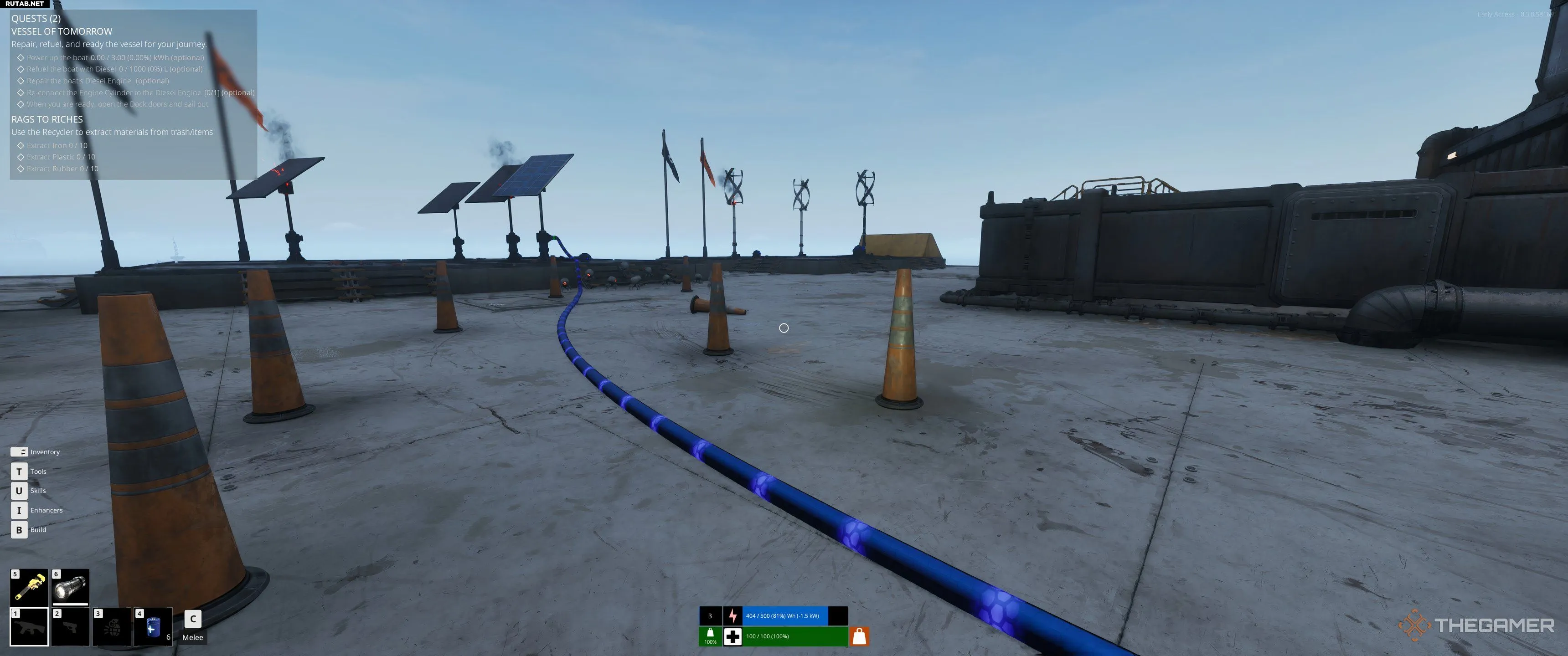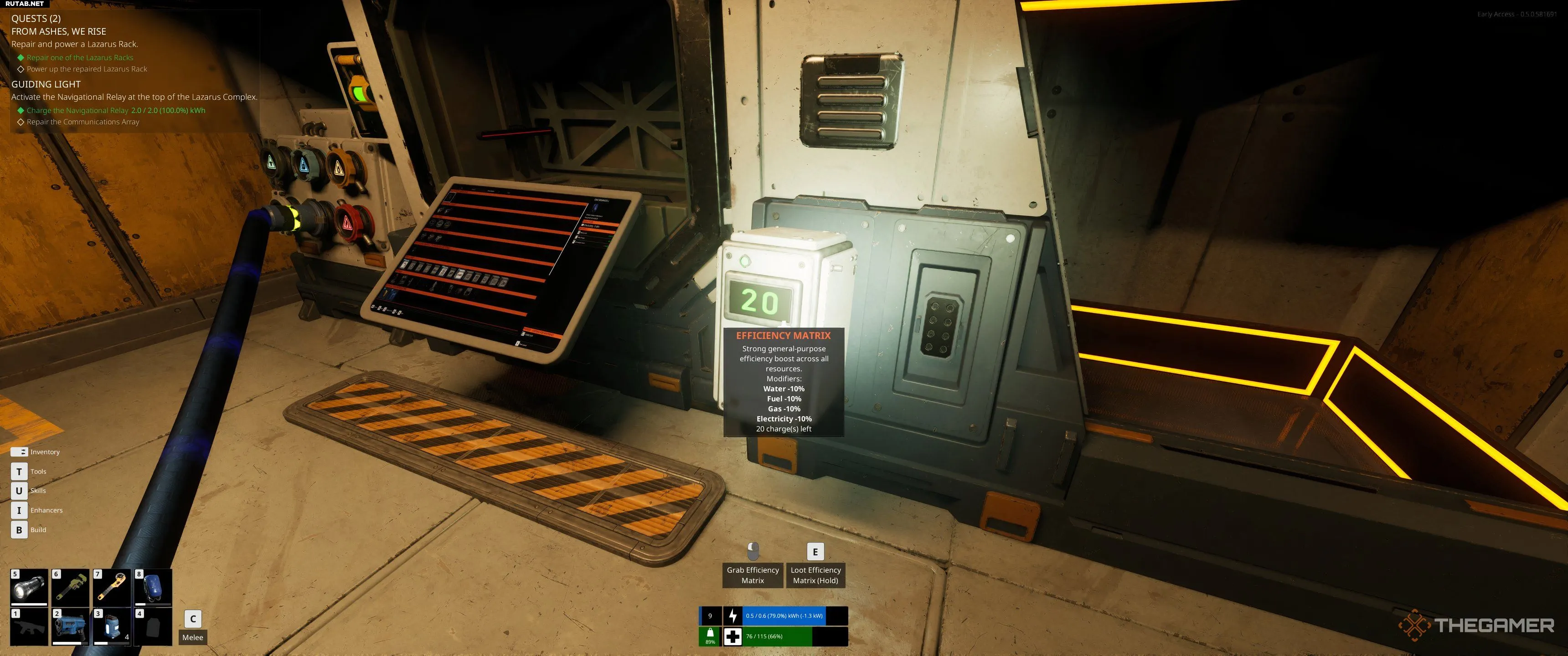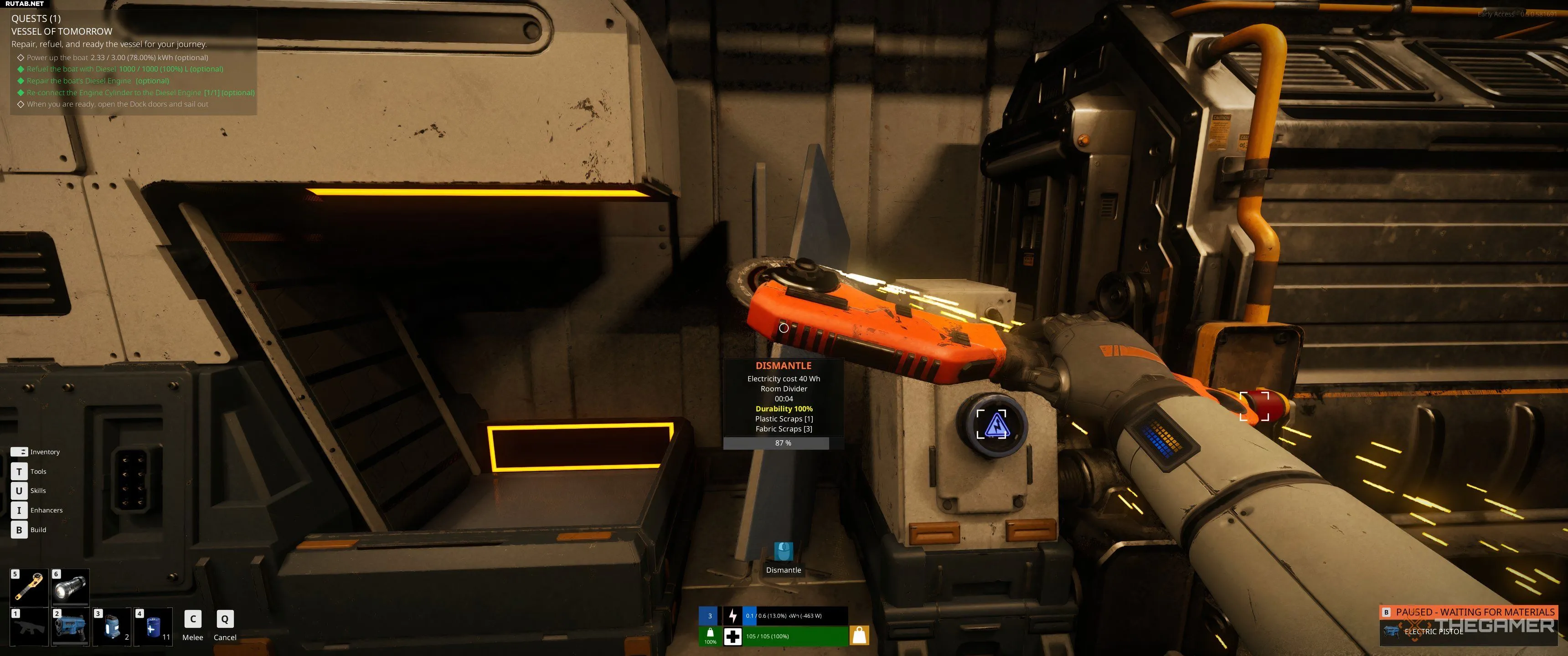 Когда инструмент окажется на панели быстрого доступа, нажмите соответствующую клавишу, чтобы экипировать его, затем, держа инструмент в руке, наведите курсор на предмет, который хотите уничтожить. Это покажет, сколько энергии батареи потребуется, а также какие обломки вы получите от предмета.