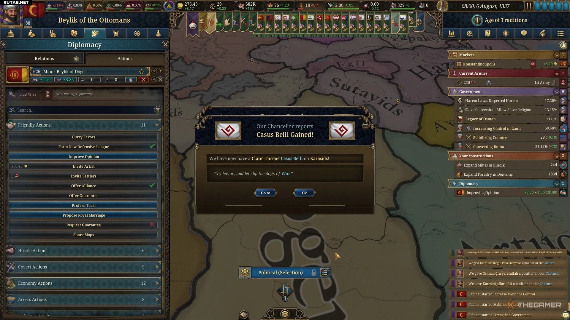Объявить войну можно и без Casus Belli, но это резко увеличит ваш уровень антагонизма. Лучше спровоцируйте противника на создание повода или поручите шпиону сфабриковать его, чтобы избежать штрафов.