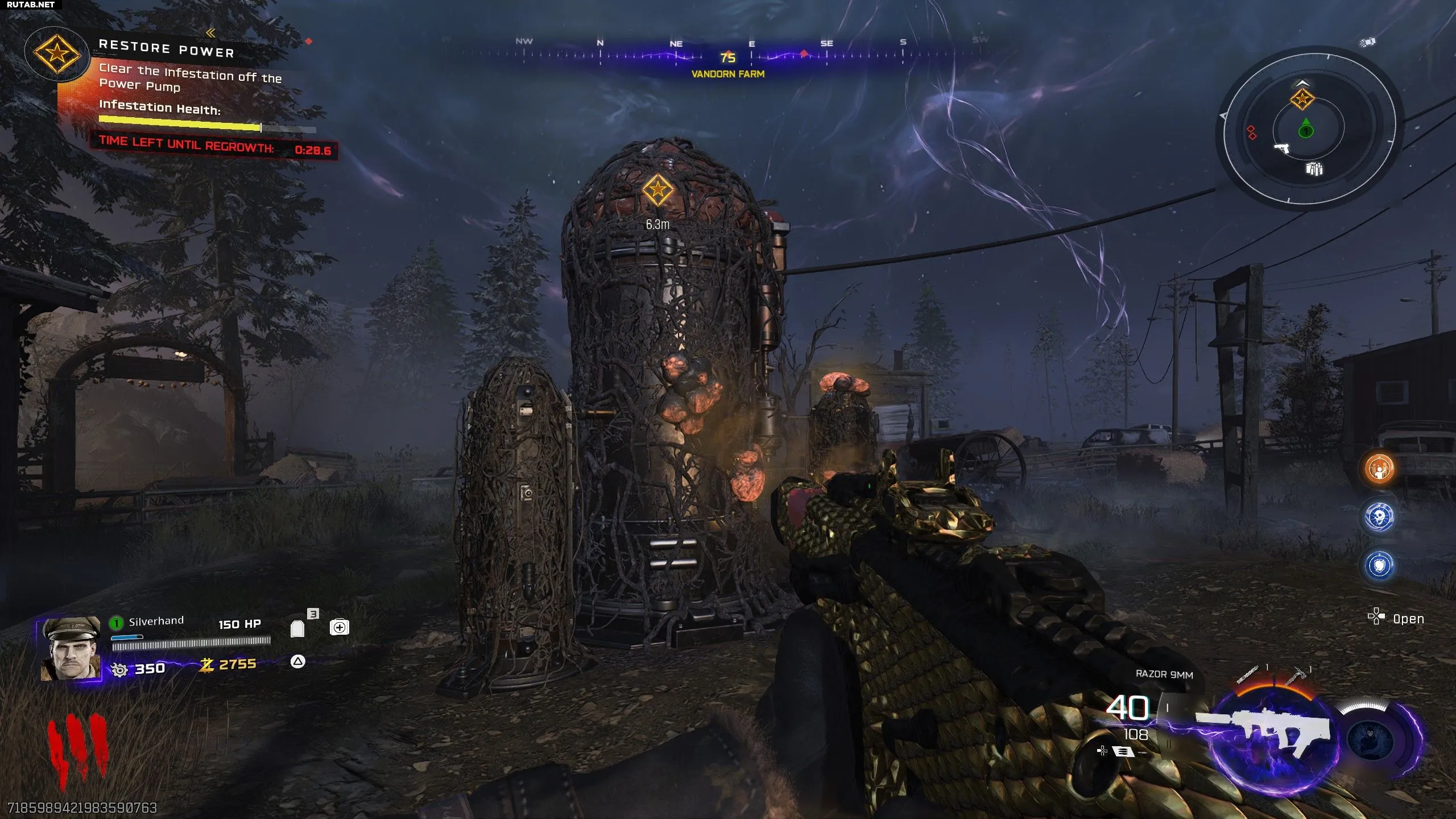 Добравшись до Фермы Вандорна, идите к энергонасосу на северной стороне и стреляйте в светящиеся шары. У вас будет 30 секунд, чтобы уничтожить их все, включая последний шар наверху насоса. Затем направляйтесь на юг и откройте Амбар за 1750 Эссенции. На втором этаже вы найдёте выключатель питания, который активирует Усилители и Арсенал на ферме. Пока что сосредоточьтесь на Усилителях и оставайтесь в этой зоне несколько раундов, чтобы накопить Эссенцию. Мы рекомендуем задержаться на Ферме Вандорна до тех пор, пока не купите Броню 2-го уровня в Гараже за 4000 Эссенции — это защитит вас от атак зомби. Как только у вас будет не менее 5000 Эссенции, отправляйтесь в Эшвуд.