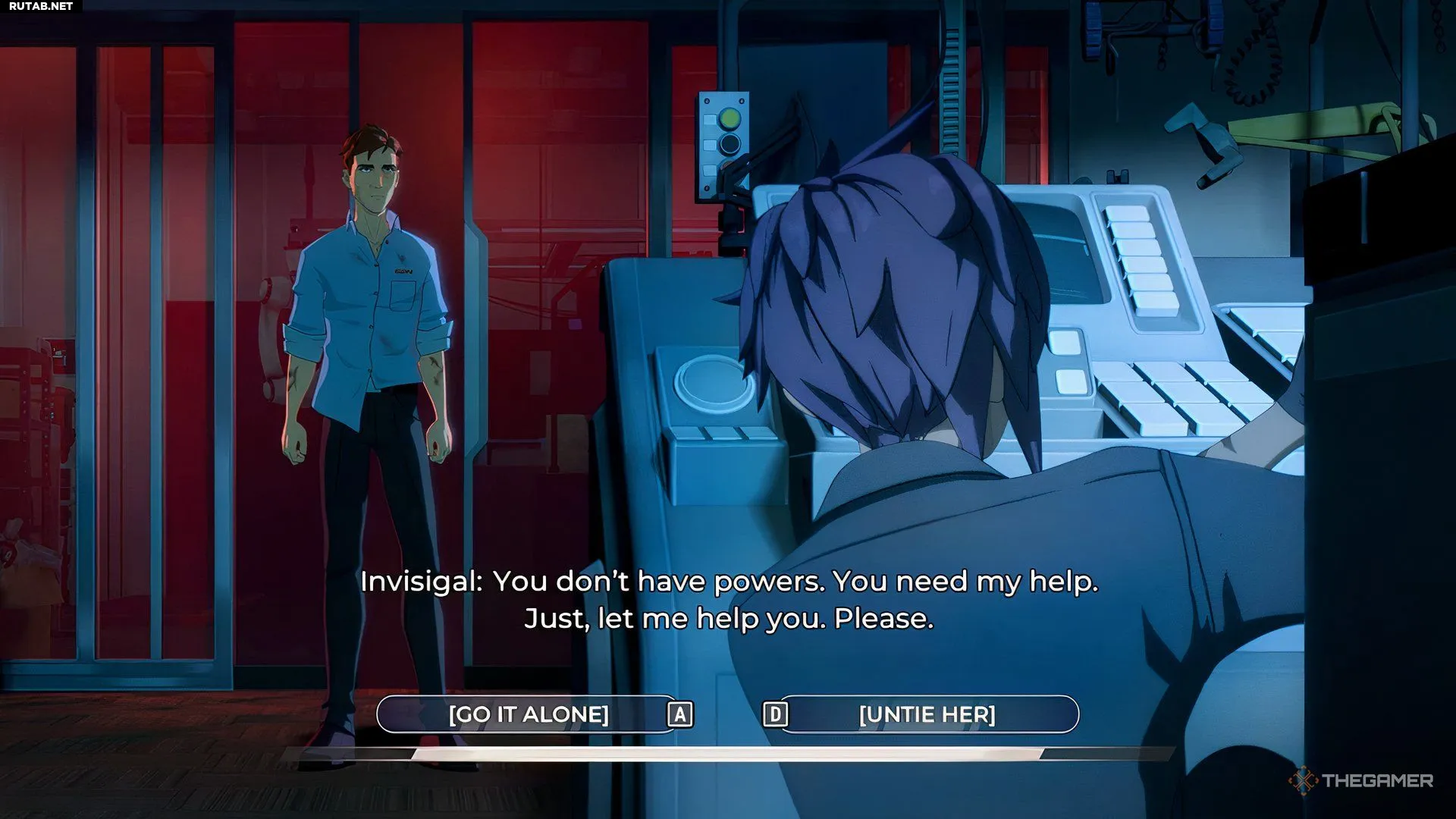 - Действовать в одиночку — Ройд просил не развязывать Невидимку, и её предложение помощи выглядит подозрительно. Если вы ранее отвергали её попытки сближения и не прощали предательства, доверять ей опасно. Действуя в одиночку, вы будете сражаться с бойцами Красного Кольца лишь с электрошокером, без гарантии помощи Невидимки.
