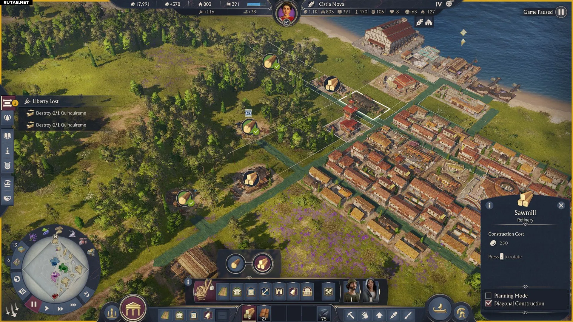 Что касается строительства, игроки могут изучить горячие клавиши в Anno 117: Pax Romana, чтобы упростить процесс. Также стоит знать, что можно массово строить, удерживая кнопку, и копировать или перемещать целую область, выделив её (удерживать и выбрать область).