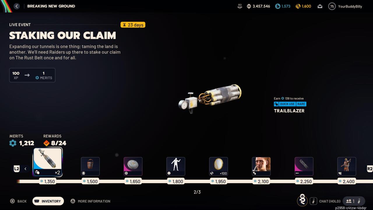 Чтобы получить все призы, нужно заработать 3600 очков заслуг. Каждые 100 очков опыта, полученные в рейдах, конвертируются в 1 очко заслуг. Награды открываются автоматически каждые 150 очков.
