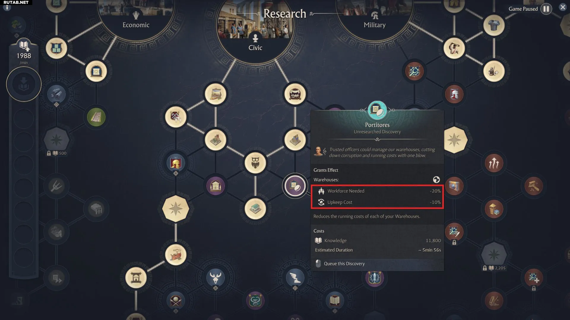 Некоторые исследования в Anno 117: Pax Romana могут снизить расходы на содержание или увеличить доход. Поэтому важно постоянно вести исследования, чтобы не отставать в развитии.