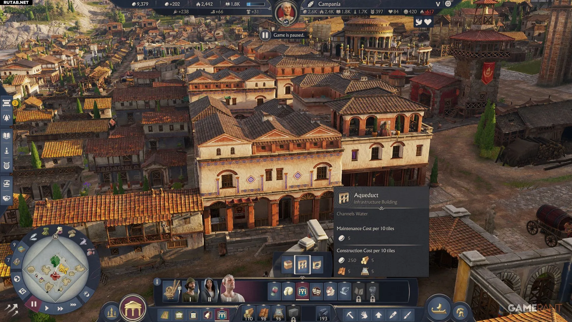 Акведуки становятся доступны после повышения уровня жилища плебеев до уровня всадников. Для этого необходимо удовлетворить потребности плебеев: обеспечить их хлебом, гарумом, санктуариями, школами грамматика, сандалиями и мылом.