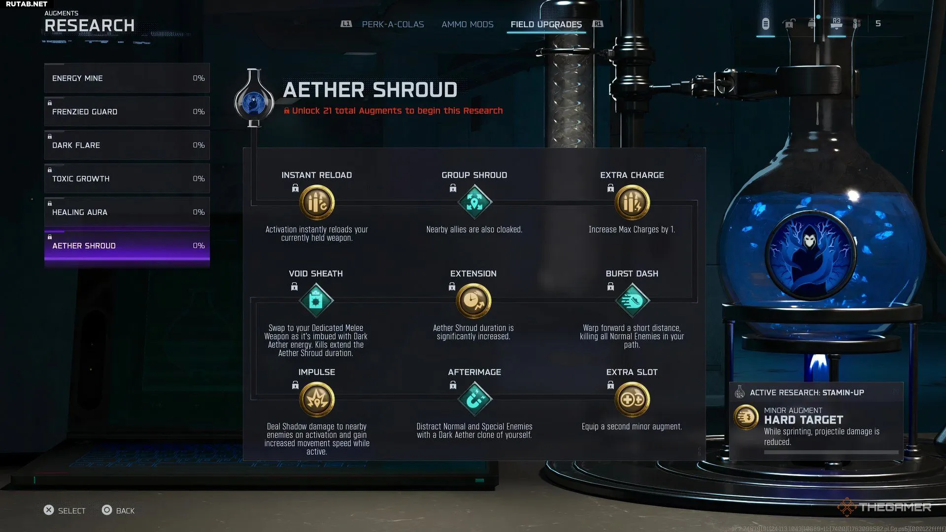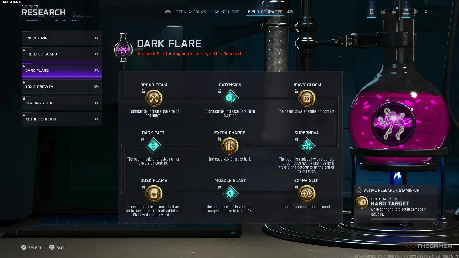 Кроме того, одновременно можно вести исследование только в одной схеме. Например, пока вы исследуете аугменты для Stamin-Up, чтобы открыть Hard Target, вы не можете параллельно исследовать модификацию патронов Dead Wire для открытия High Voltage.