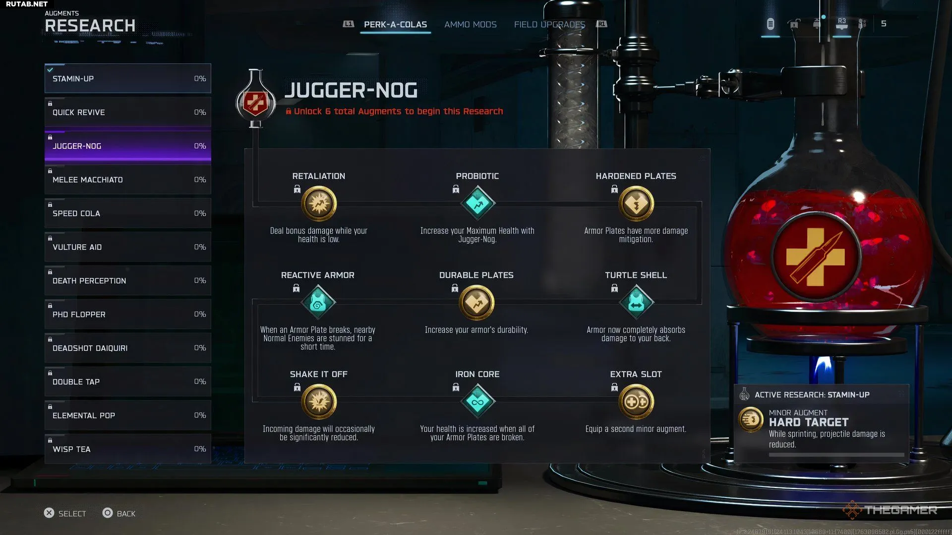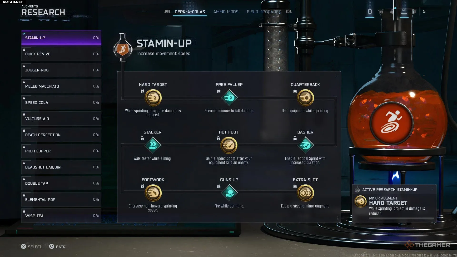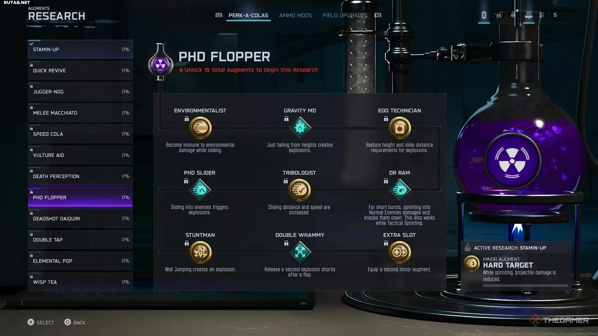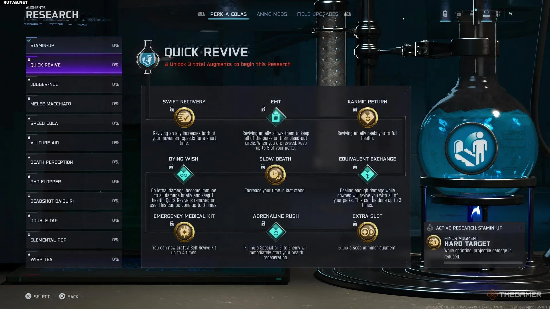 Однако вы не можете просто выбрать любой понравившийся аугмент, поскольку все схемы для Perk-a-Colas, модификаций боеприпасов и полевых улучшений открываются последовательно. Неважно, какие именно аугменты вы исследуете — любой прогресс учитывается для открытия следующего дерева.