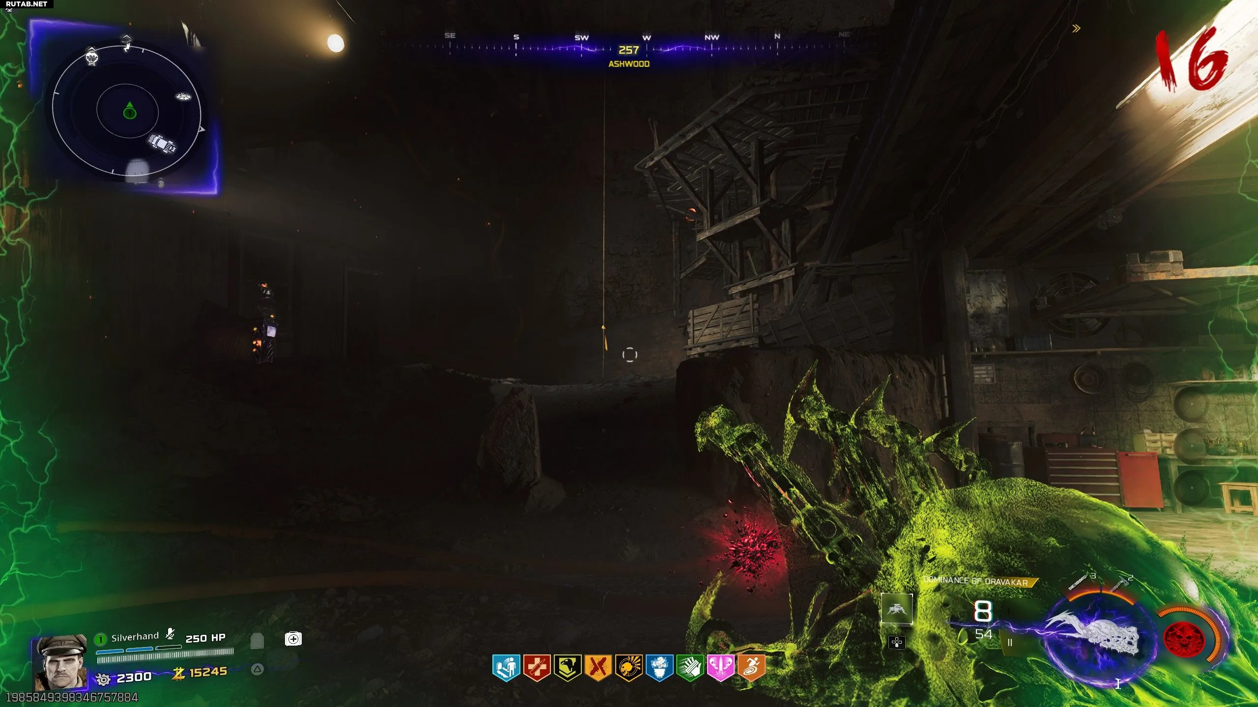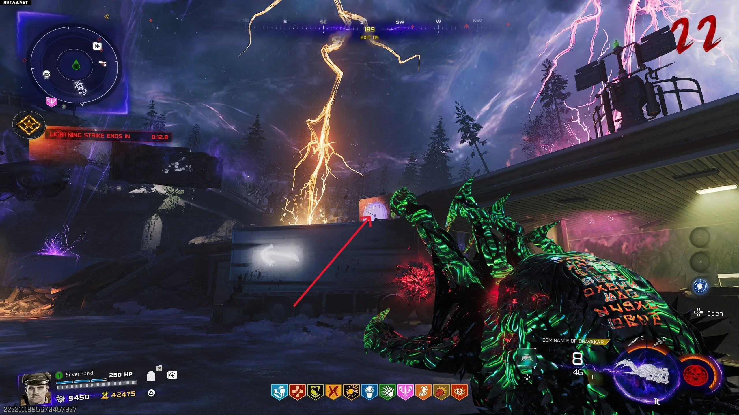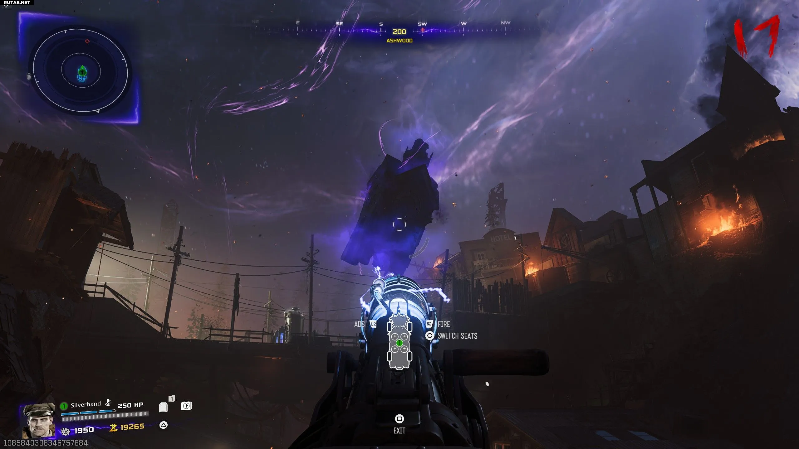 Теперь на Олде Тесси установлен Ствол турели DG-2, который можно использовать для стрельбы по парящей часовой башне в Эшвуде. После попадания в башню она начнёт звонить и светиться. Затем выстрелите в неё из Перчатки Некрожидкости и перезарядитесь, чтобы войти в астральную форму с фиолетовым свечением. В этом режиме отправляйтесь на Олде Тесси в Выход 115, где вы увидите множество вспышек молний. Если молний нет, переходите к Шагу 8 или 9 и возвращайтесь в следующий раунд — молнии появляются каждые 2 раунда.