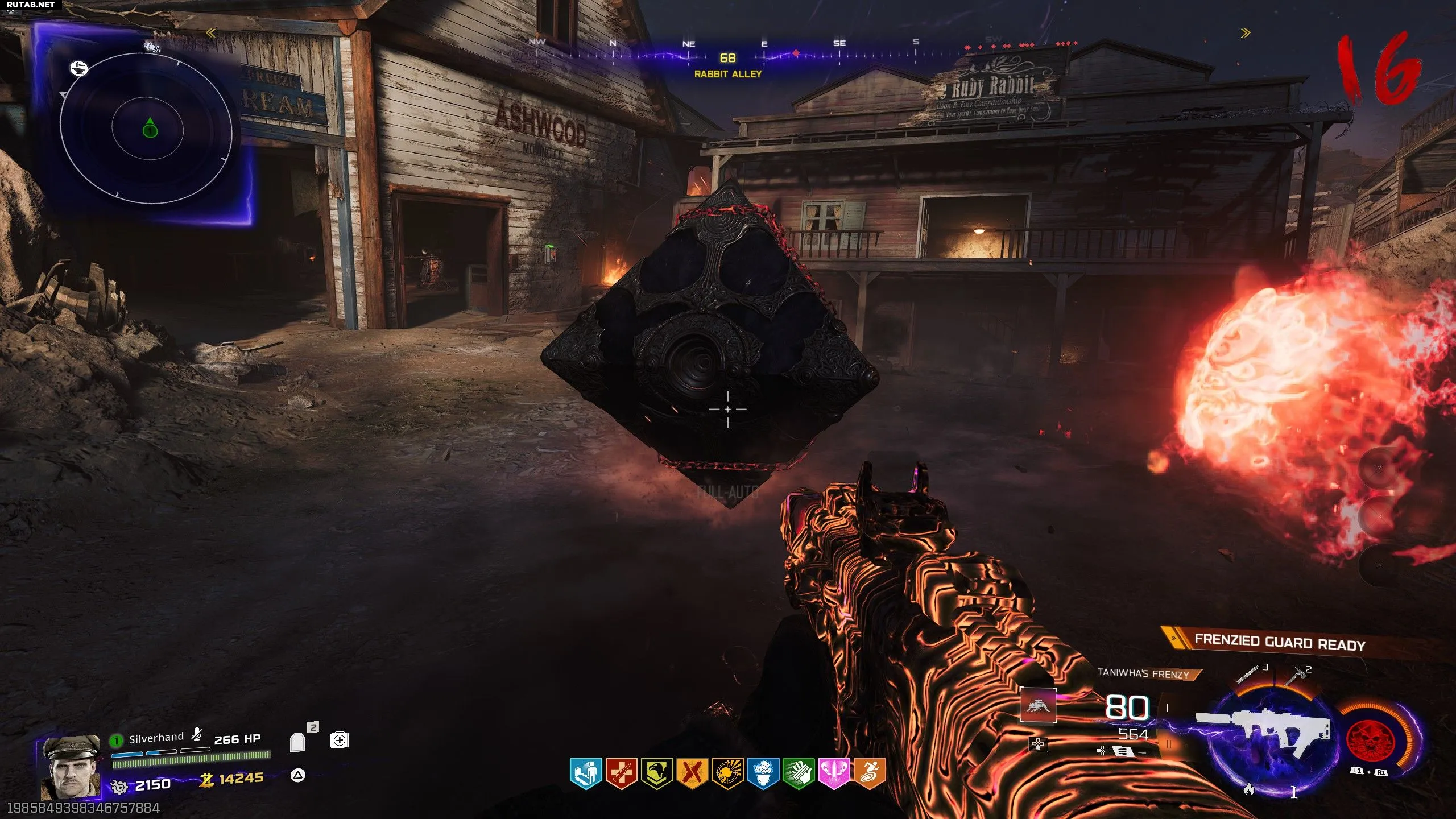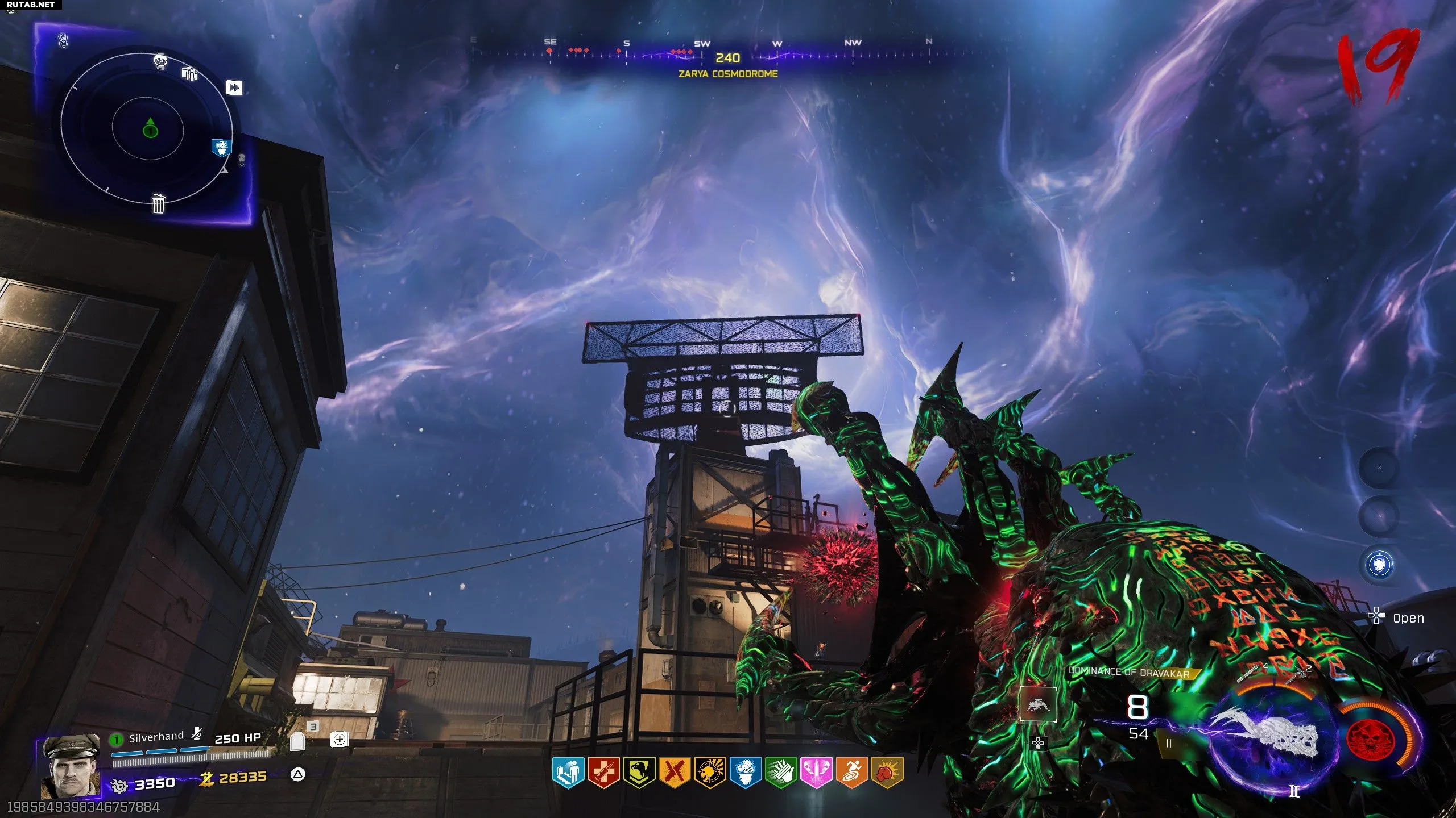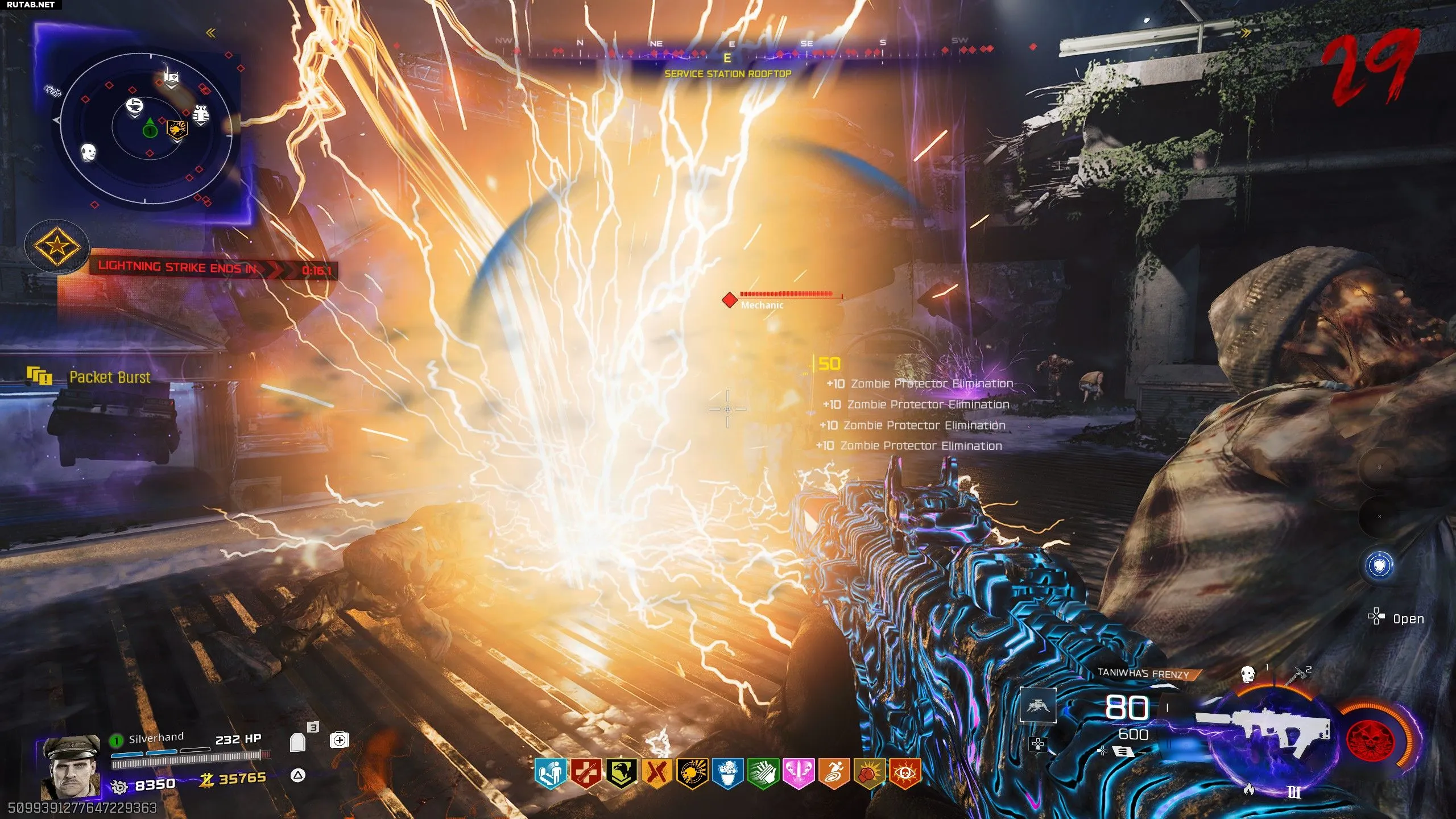 Теперь на Олде Тесси установлен Ствол турели DG-2, который можно использовать для стрельбы по парящей часовой башне в Эшвуде. После попадания в башню она начнёт звонить и светиться. Затем выстрелите в неё из Перчатки Некрожидкости и перезарядитесь, чтобы войти в астральную форму с фиолетовым свечением. В этом режиме отправляйтесь на Олде Тесси в Выход 115, где вы увидите множество вспышек молний. Если молний нет, переходите к Шагу 8 или 9 и возвращайтесь в следующий раунд — молнии появляются каждые 2 раунда.