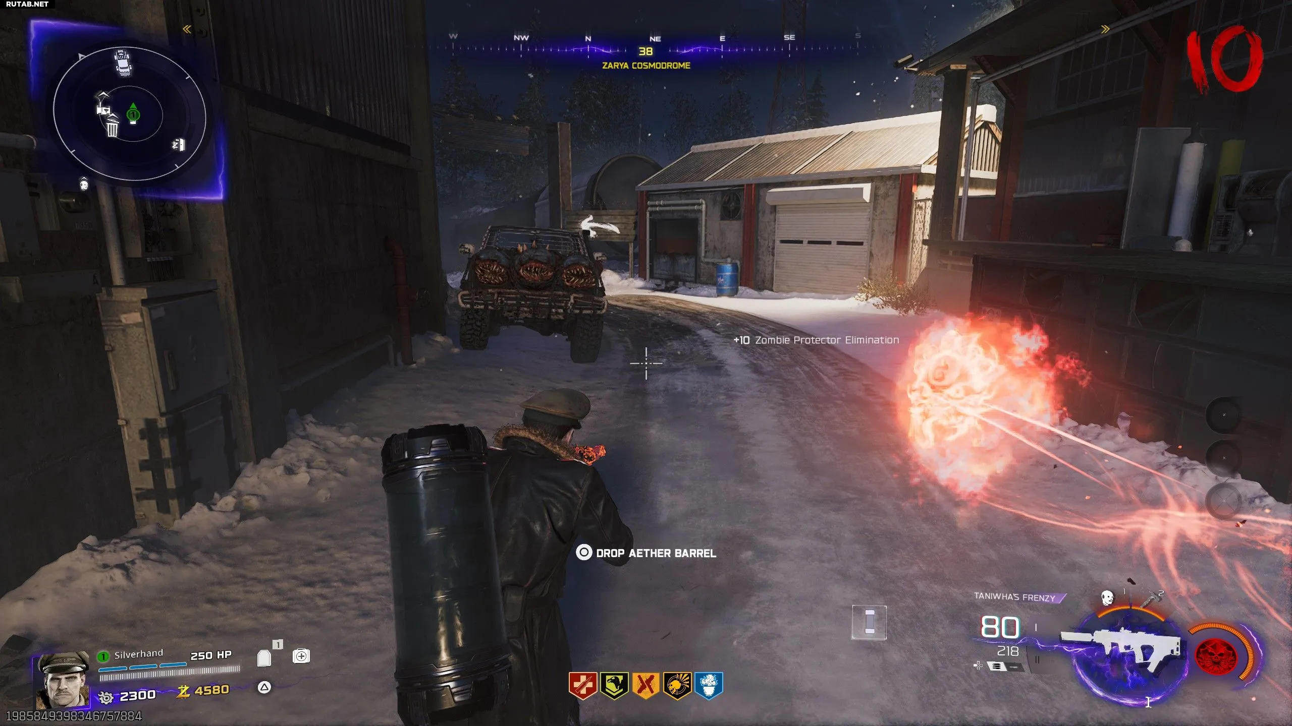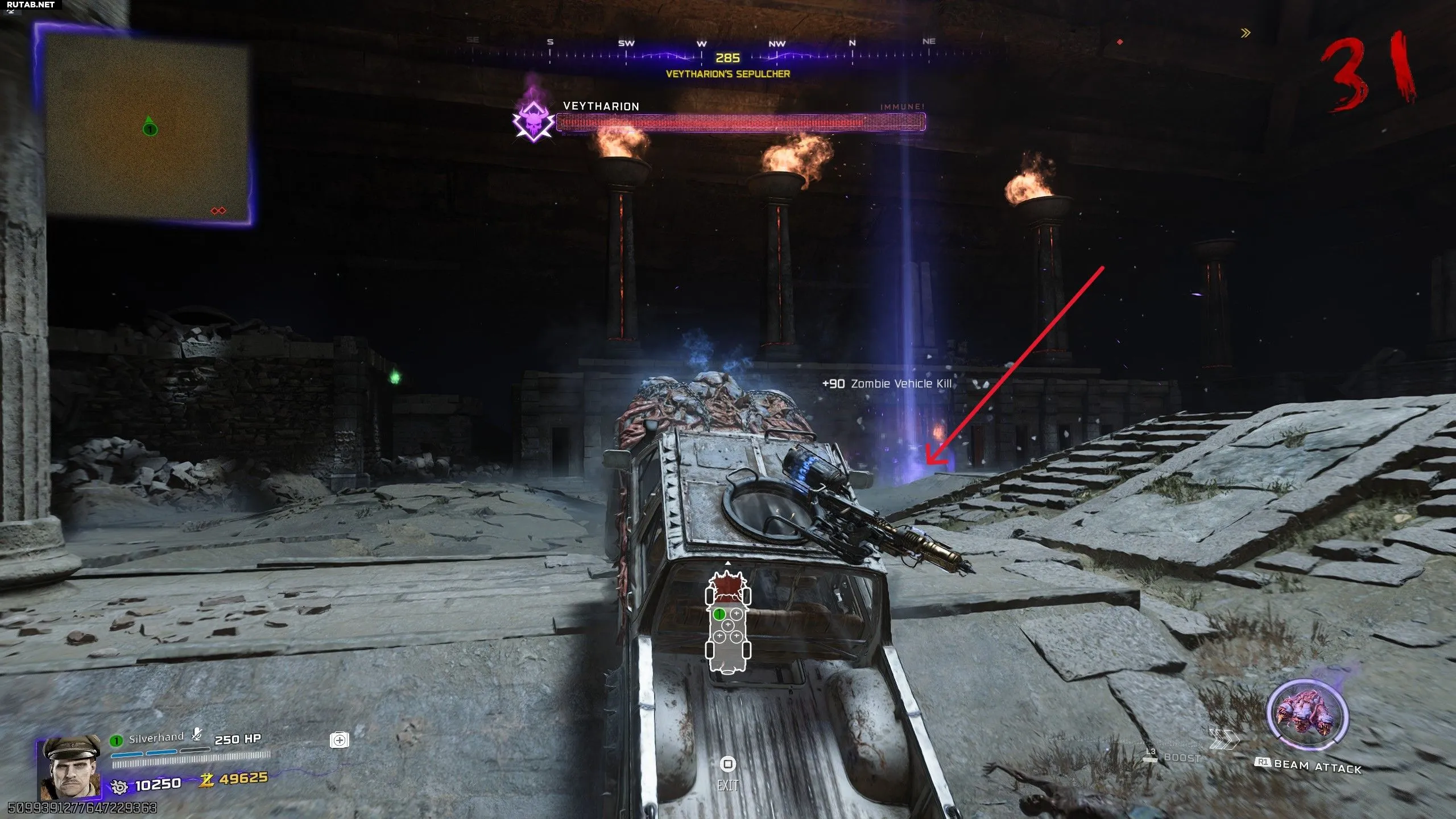 Настал финальный этап — время сразиться с боссом Вейтарионом в пасхалке Прах Проклятых. Эта гигантская масса плоти будет стрелять в вас лазерами, вращаться, выплёвывать зомби и запускать смертоносные ракеты. Битва очень сложная, но с Олдом Тесси у вас есть шанс выжить. Рекомендуем оставаться на Олде Тесси и использовать его для таранов Вейтариона. Ствол турели DG-2 также наносит хороший урон — если один из игроков находится в турели, цельтесь в открытые пасти и нижнюю часть тела босса.