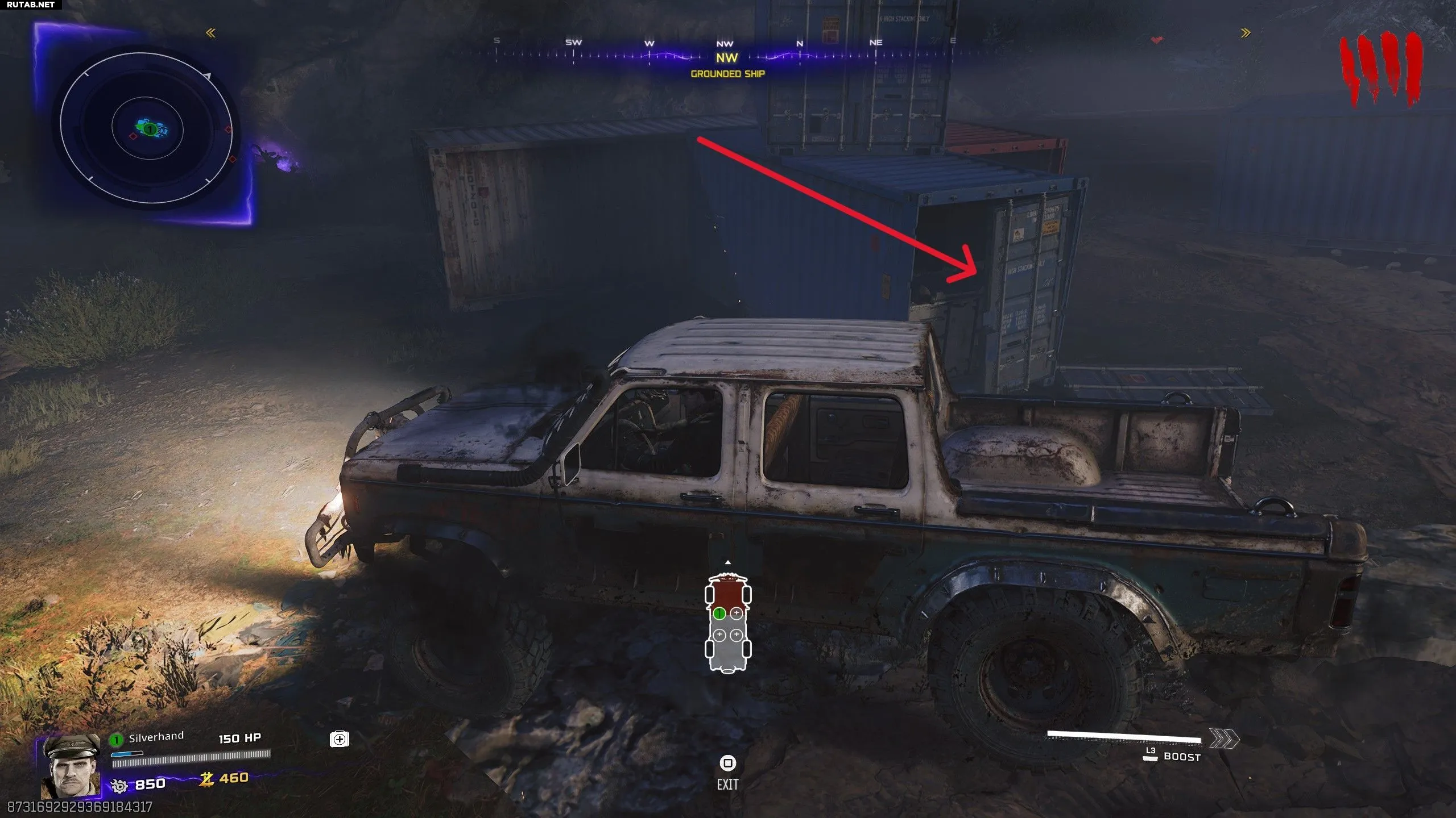 - Местоположение зелёного ключа №3 — На Севшем на мель корабле, в приоткрытом синем морском контейнере на северо-западе