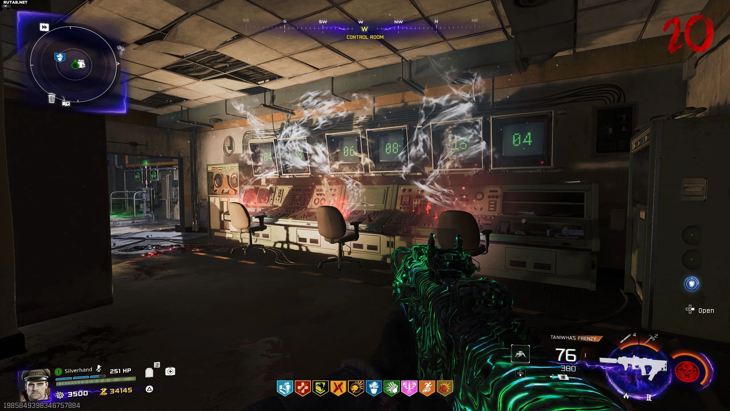 - Взаимодействуйте с зелёной кнопкой и стойте в красном круге сканирования, глядя на камеру, пока сканирование не завершится. В процессе отбивайтесь от зомби (рекомендуется использовать Monkey Bombs).