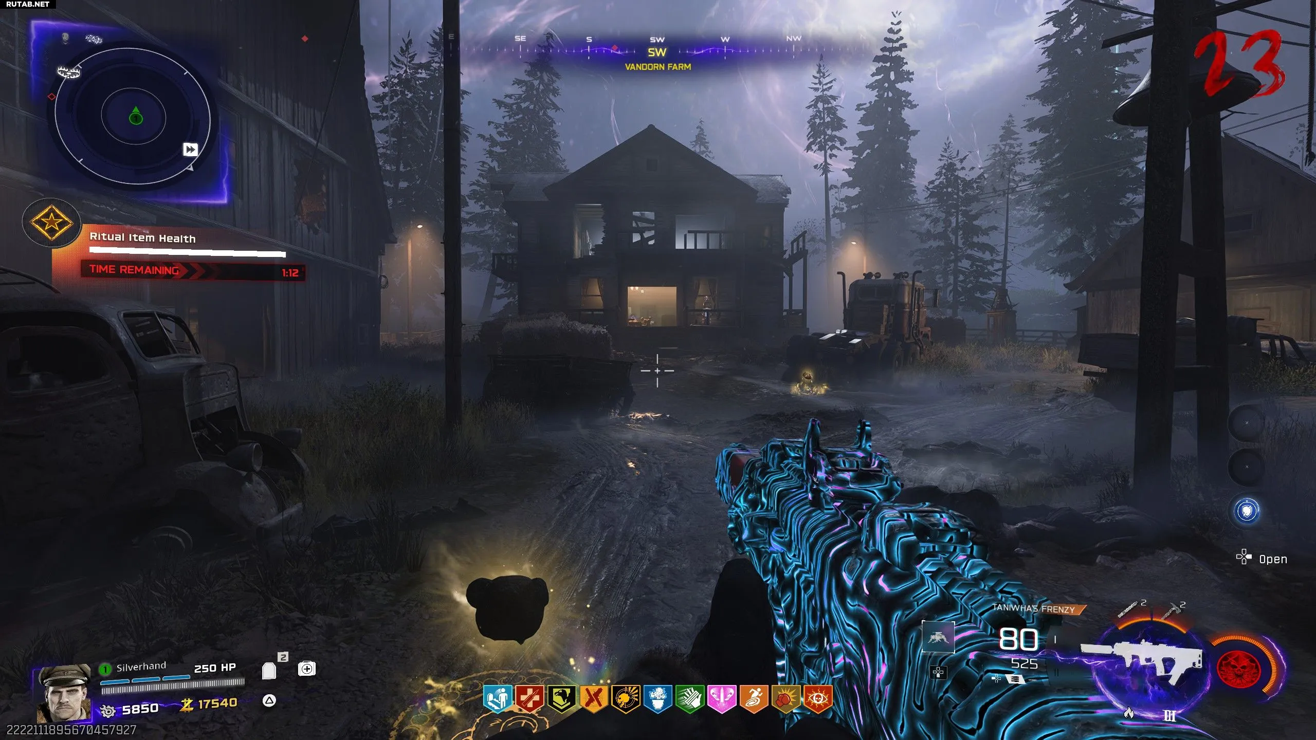 Собрав все 4 ритуальных предмета, вы увидите светящиеся круги в центральной зоне фермы Вандорн. Взаимодействуйте с каждым кругом, чтобы разместить найденные предметы. После размещения последнего предмета взаимодействуйте с ним снова, чтобы начать ритуал. Вам нужно будет защищать предметы от зомби, которые атакуют только ритуальные объекты. Защита длится 60 секунд — используйте гранаты Казимира, пилу-ловушку и перк Frenzied Guard, чтобы отвлекать зомби.