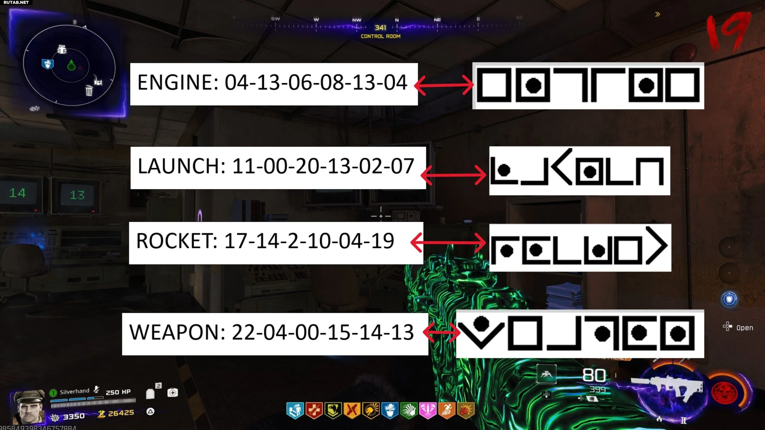 После определения слова преобразуйте его в числа по алфавиту (A=00, Z=25). Мы уже указали комбинации выше, чтобы вам не пришлось считать. С числами на руках подойдите к терминалам на северо-западе и введите цифры слева направо. Когда терминал покажет ваше число, стреляйте в красную кнопку на экране, чтобы зафиксировать его. При ошибке шаг придётся перезапустить в следующем раунде. При правильном вводе всех чисел ракета запустится.