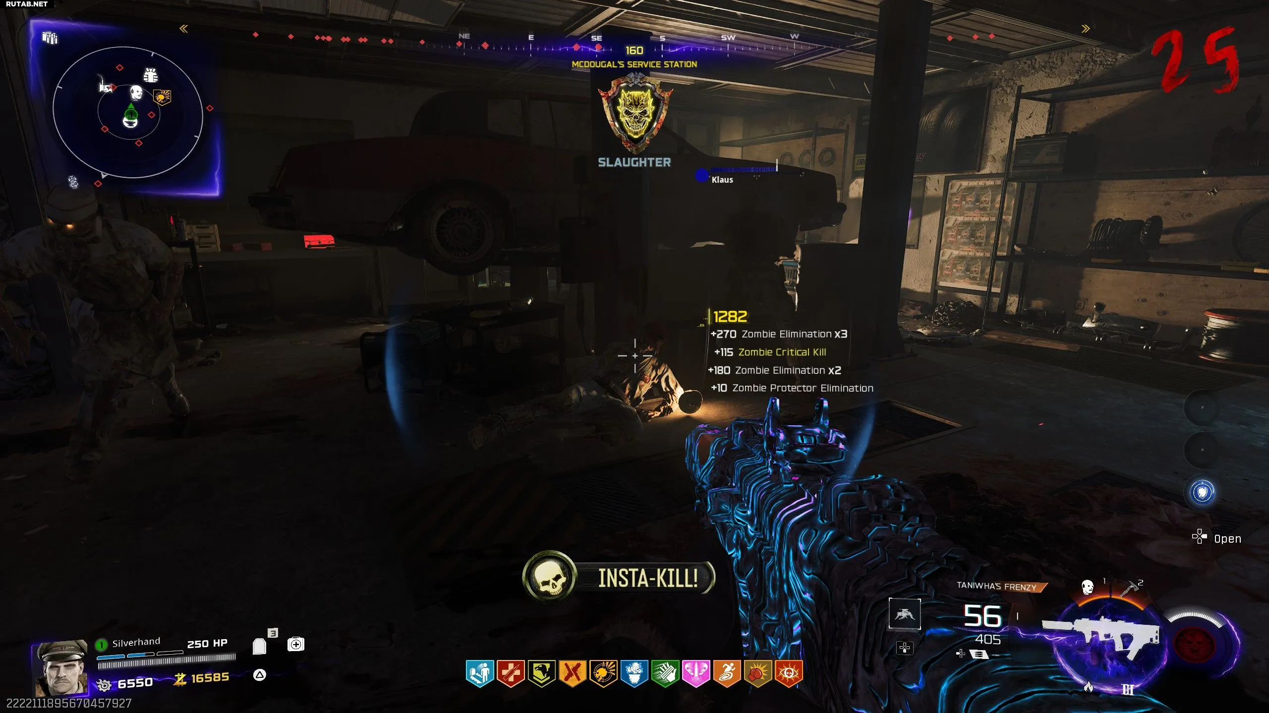 На заправочной станции Макдугал, где можно купить перк Deadshot Daiquiri, найдите панель вызова Клауса. Активируйте её, затем наведитесь на мёртвого механика рядом с поднятым автомобилем напротив точки покупки брони и нажмите L1, чтобы Клаус встал рядом. Механик оживёт, и вы сможете провести его к оранжевой молнии на крыше заправочной станции.