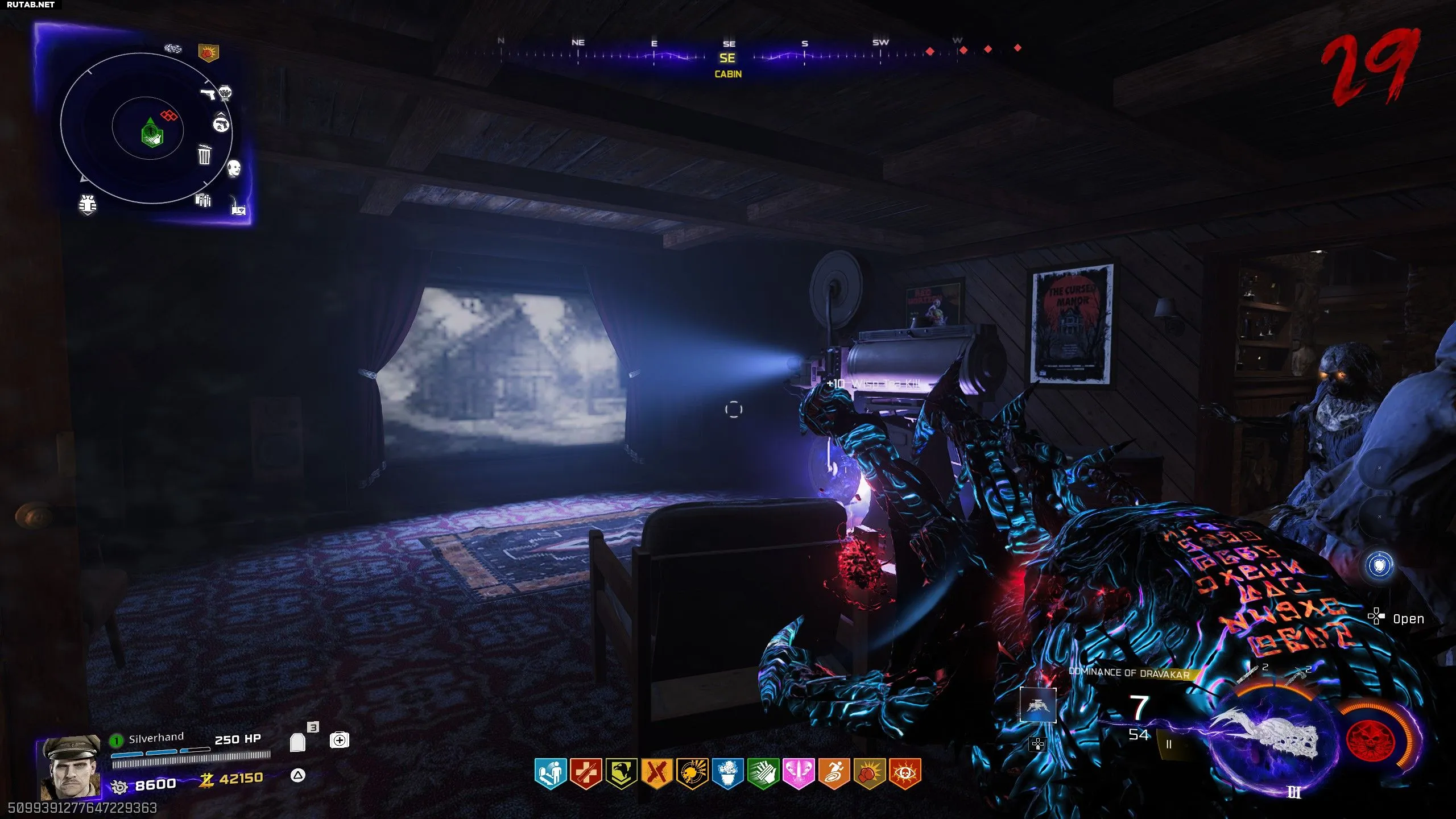 После выполнения Шага 7, Шага 8 и Шага 9 вернитесь в Эшвуд, выстрелите из Ствола турели DG-2 Олда Тесси в часовую башню, затем из Перчатки Некрожидкости с перезарядкой, чтобы наполниться фиолетовой энергией. Теперь на Олде Тесси отправляйтесь в Блэкуотер-Лейк. На западной платформе рядом с точкой появления Mystery Box вы найдёте призрачный огонёк. Взаимодействуйте с ним, затем войдите в хижину и стреляйте в проектор в кинозале. Это активирует показ слайдов — запомните порядок демонстрируемых локаций, затем найдите и стреляйте в соответствующие катушки с плёнкой, разбросанные по этим зонам.