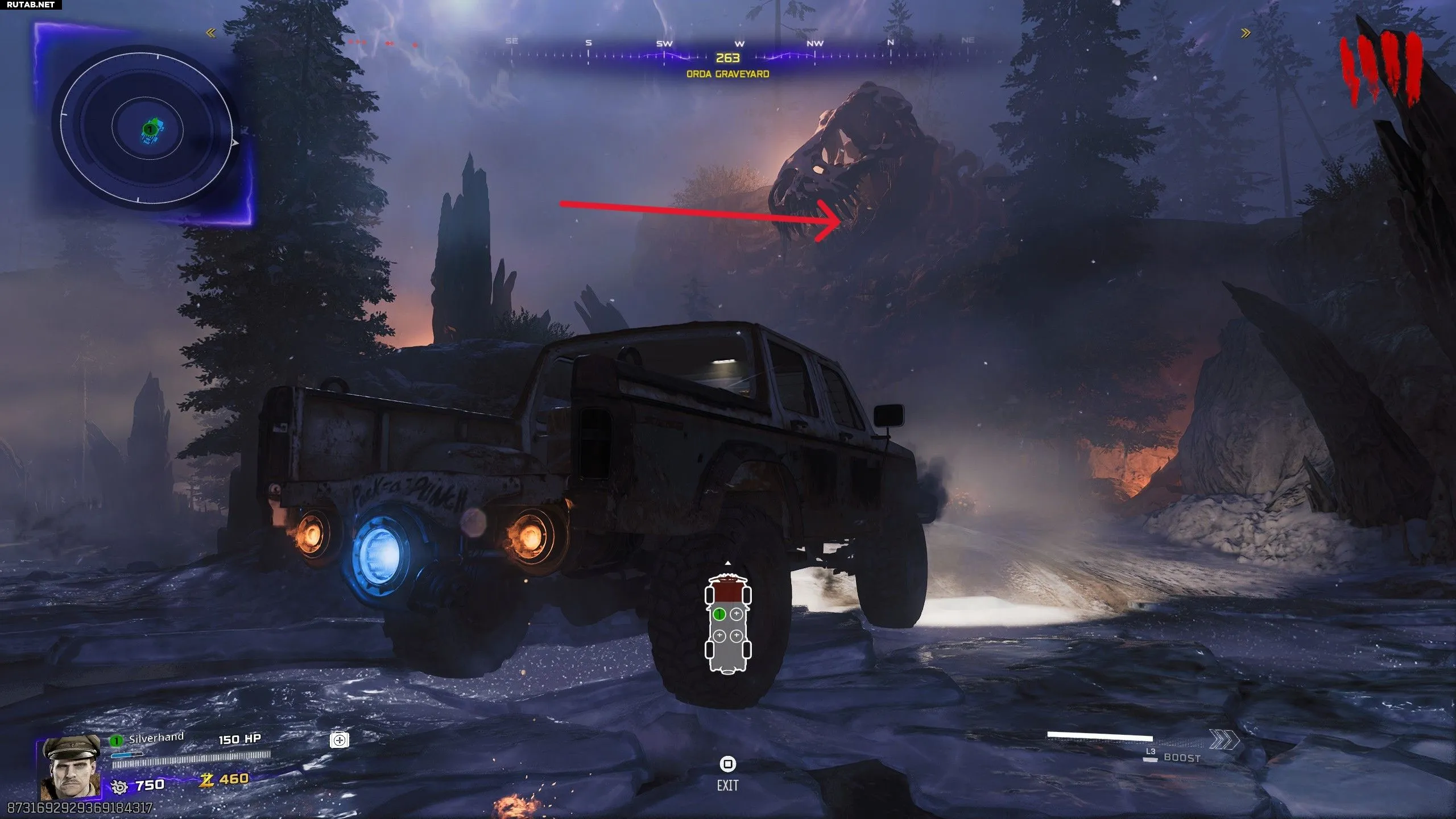 - Местоположение красного ключа №2 — В пасти черепа тираннозавра в западной части дороги