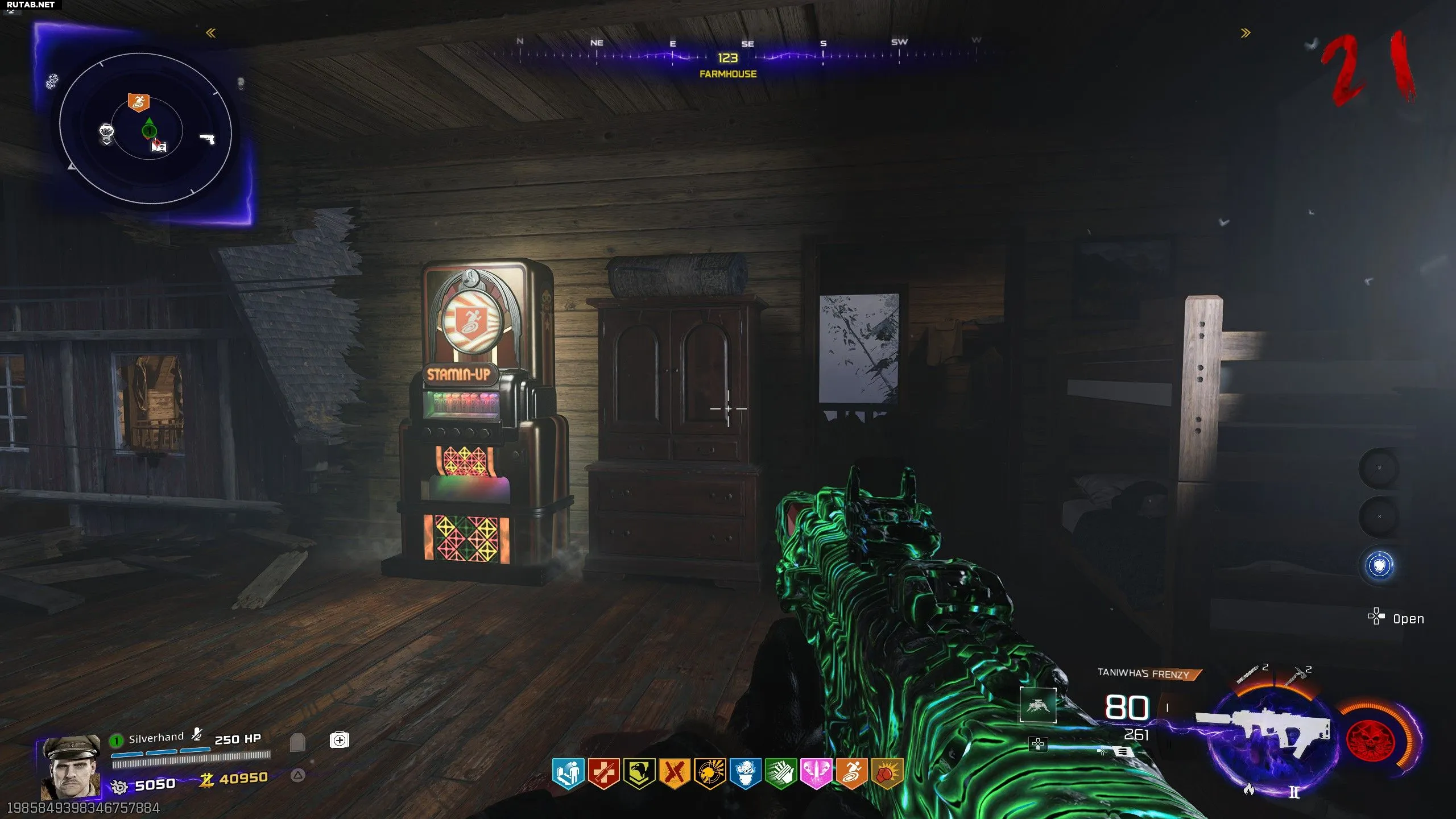 - Ритуальный предмет №1 — Плюшевый мишка Вкусная мордочка: Внутри фермерского дома поднимитесь наверх и осмотрите юго-восточный шкаф рядом с перком Stamin-Up или кроватью. Взаимодействуйте с этой областью, чтобы подобрать мишку.