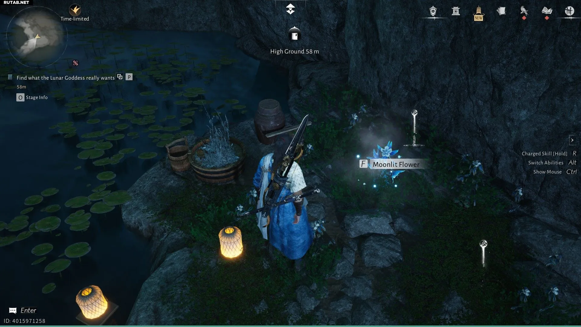 Спуститесь в жилое помещение Ли Чжэньчжэнь внизу. Там вы найдёте Лунный Цветок (тот самый, что вызывает слепоту) — сорвите его и вернитесь к Лунной Богине.