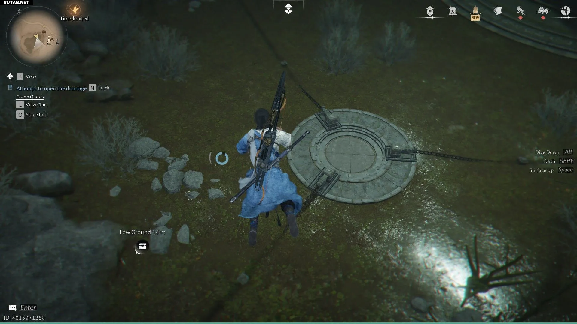 После разговора с дядей Тяном у озера возле Лунной горы вам нужно нырнуть в воду и найти способ спустить её. Прыгните в озеро и погрузитесь на дно. Вы увидите каменную плиту внизу с тремя цепями, ведущими от неё. Следуйте по цепям, чтобы найти механизмы, управляющие дренажом. Взаимодействуйте с рычагами на всех трёх механизмах, и вода уйдёт.