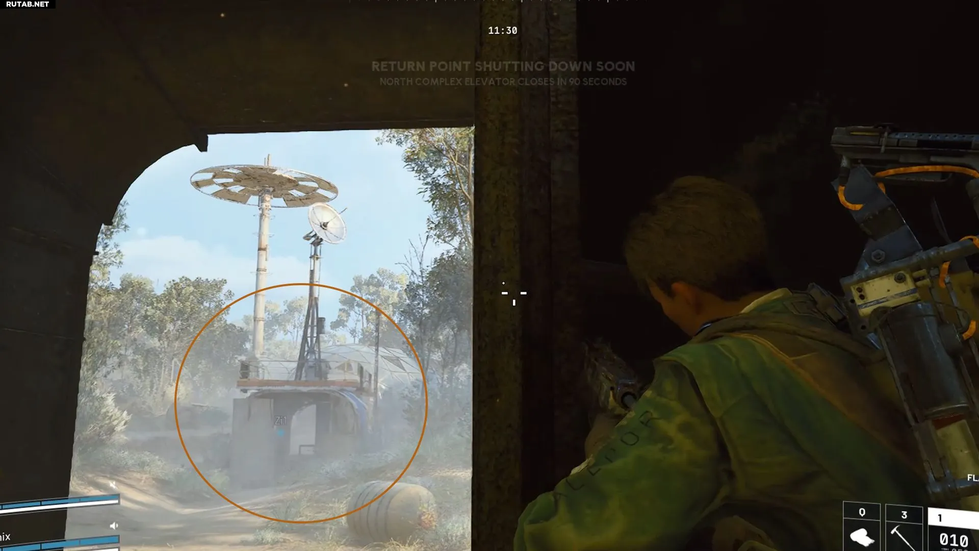 К счастью, ближайшее полевое депо находится прямо рядом с куполом — используйте юго-западный выход, чтобы найти его. Если депо в комплексе неактивно, придётся поискать другое на карте «Поля сражений у Дамбы». Активные депо определяются случайным образом, так что вам может потребоваться осмотреть несколько точек.