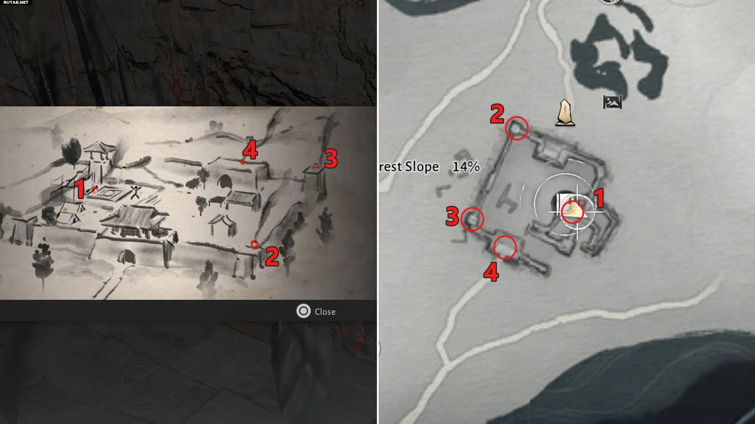После победы над бандитами направляйтесь к лидеру разбойников Чжан Бао. Победите его и откройте сундук на тренировочной площадке, чтобы найти карту головоломки.