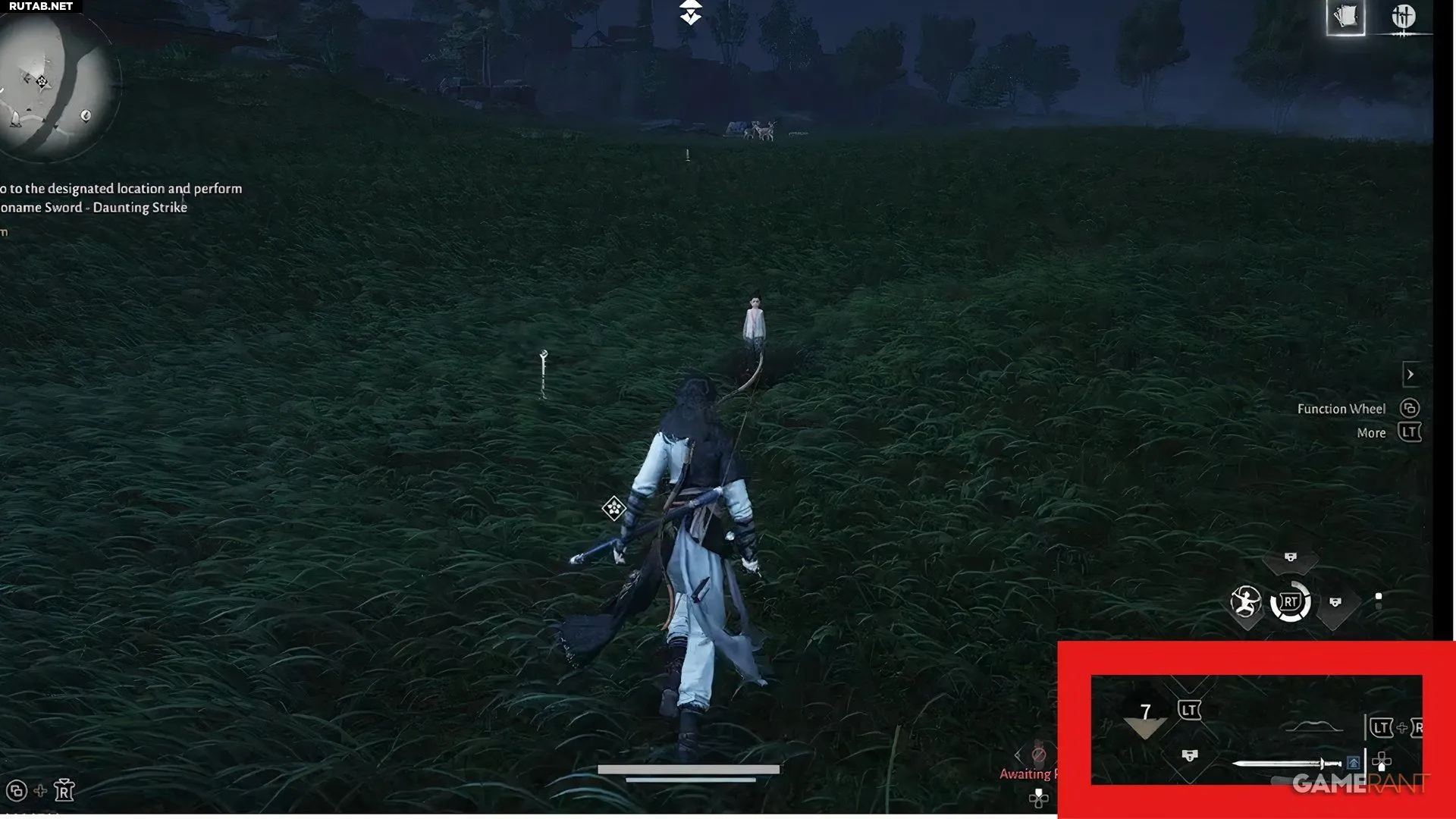 - Если меч не экипирован, переключите оружие кнопкой вниз на крестовине.