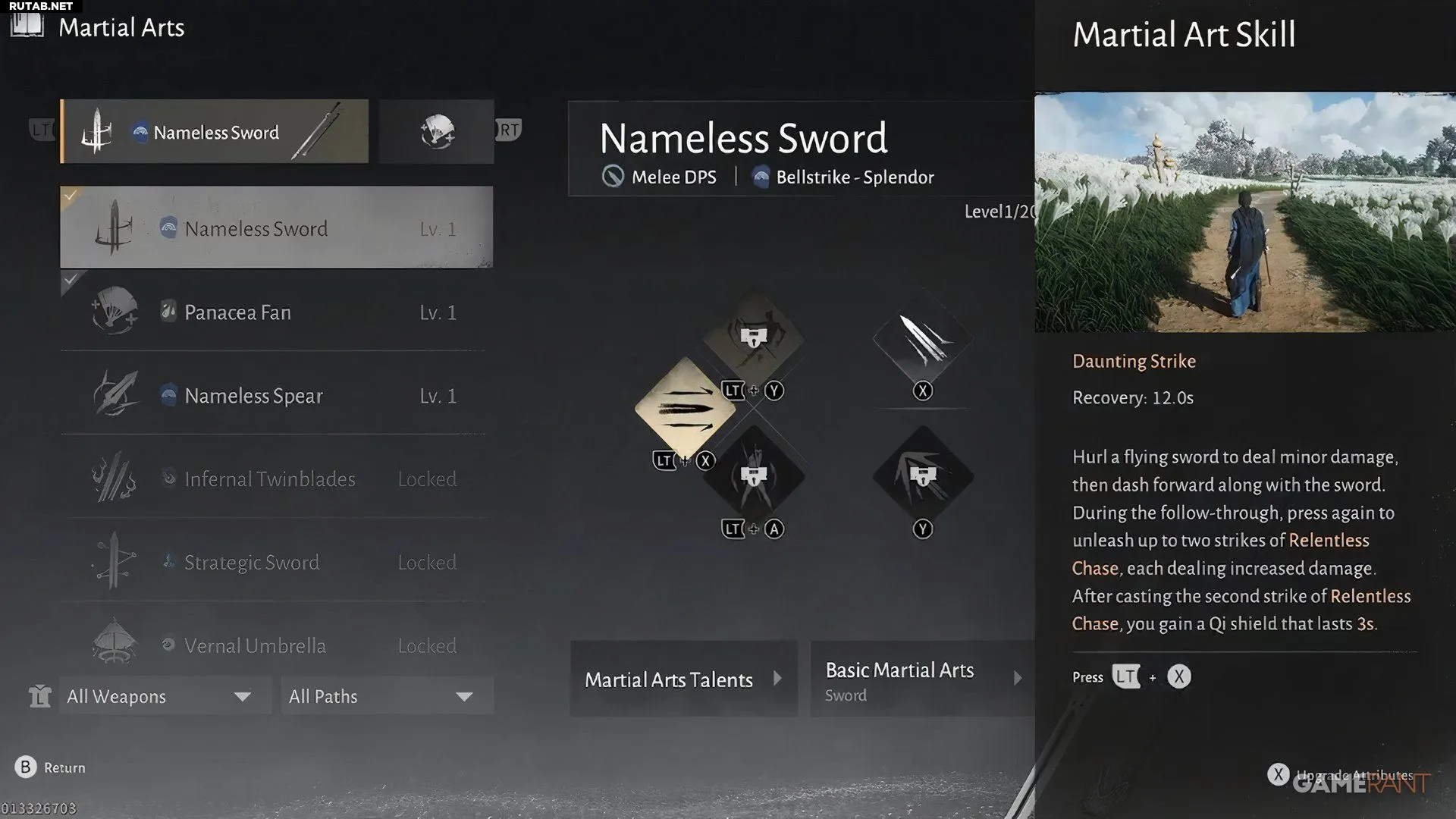 Убедитесь, что у вас экипировано искусство Безымянного меча: