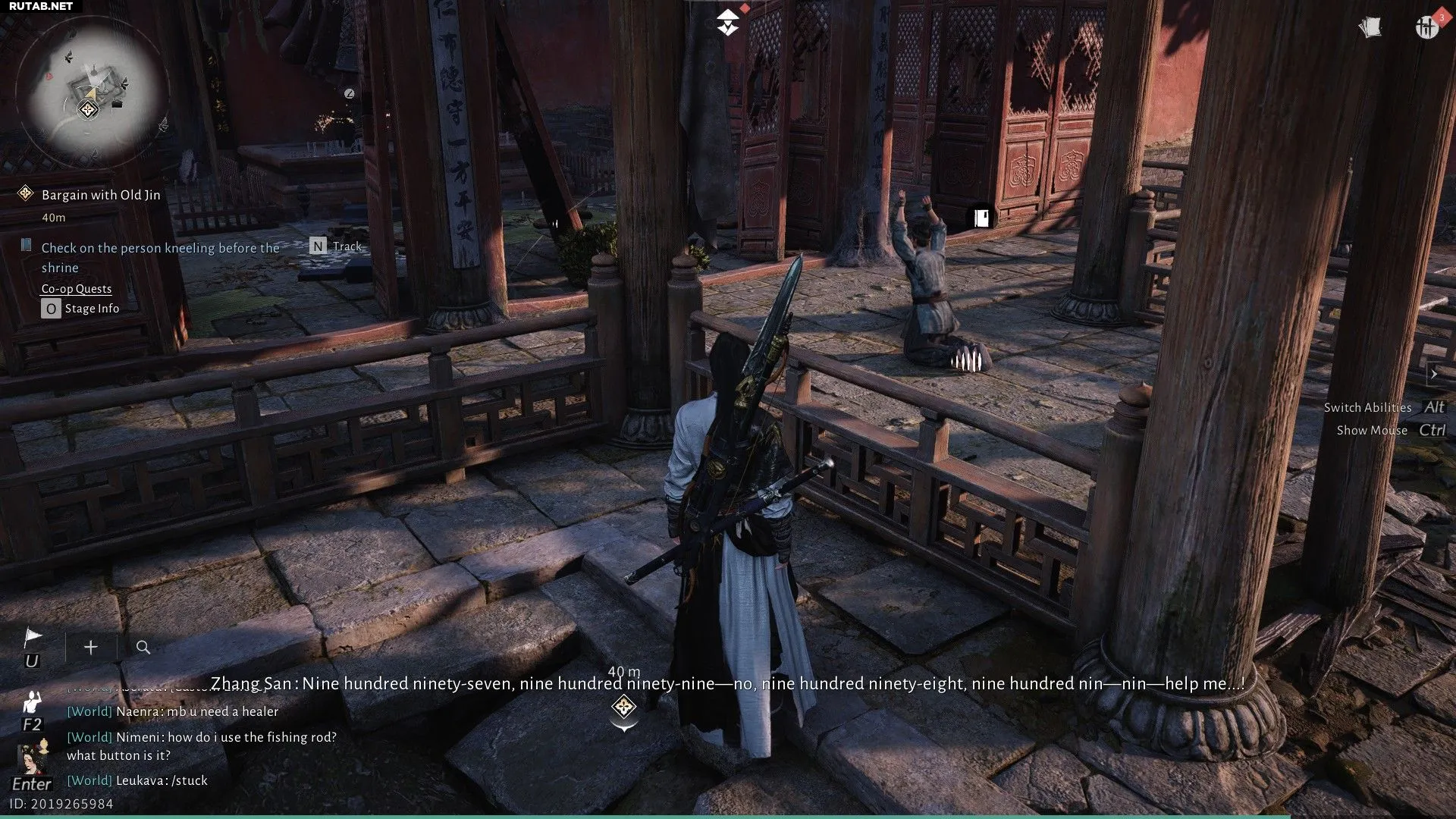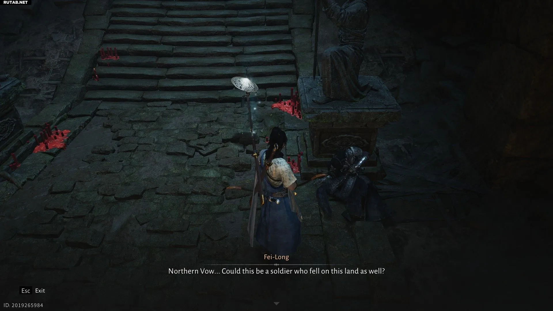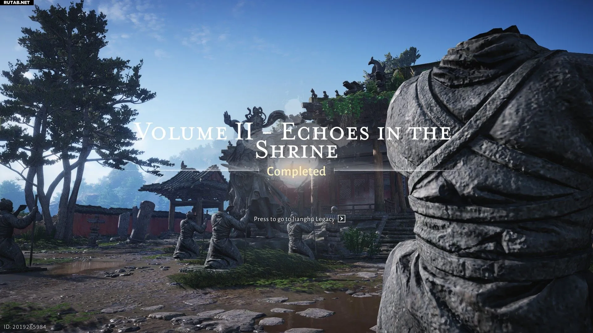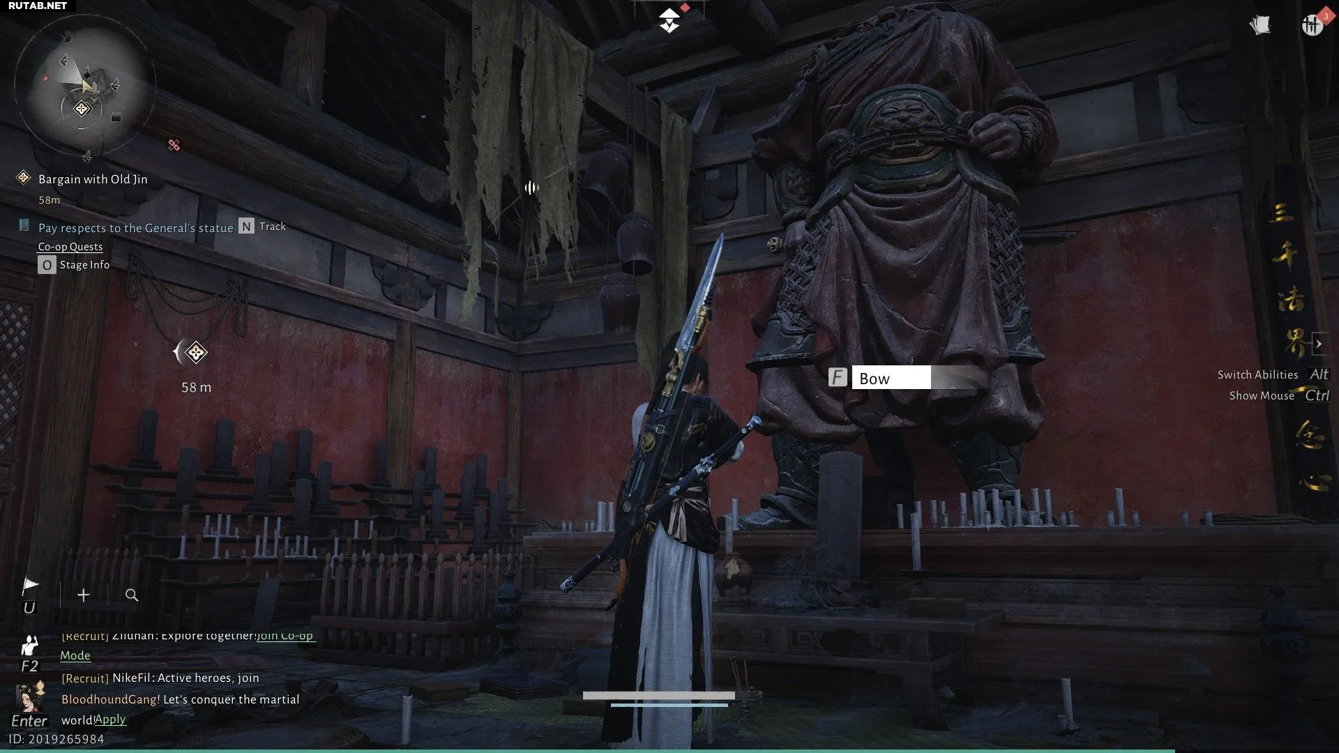 Следующий шаг — поговорить с мужчиной, кланяющимся у входа, чтобы запустить квест Эхо в святилище. Обратите внимание на его слова о тысяче поклонов генералу (на самом деле их нужно сделать три, но запомните эту подсказку).