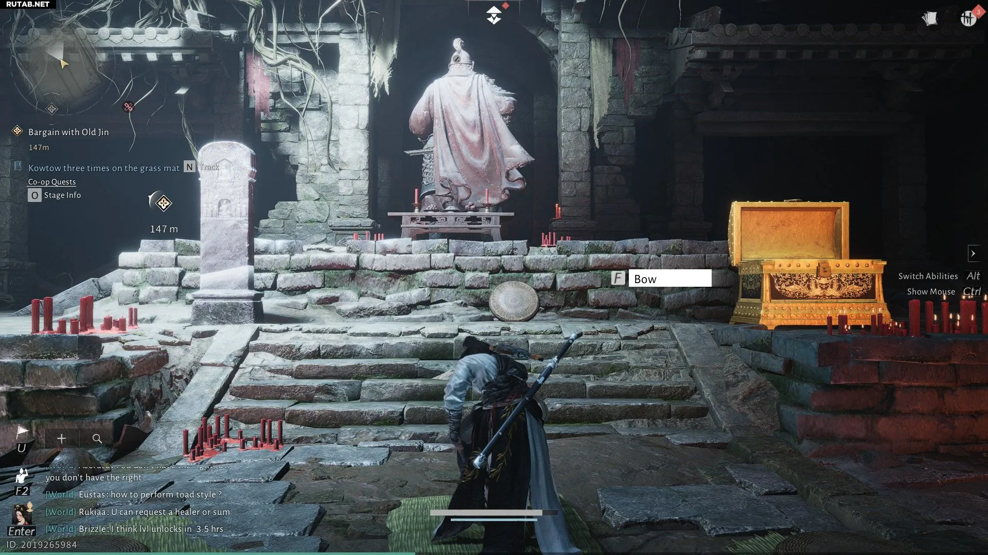 Этот босс не так сложен, как кажется. После победы соберите награды на балконах (по одному сундуку с каждой стороны), затем спуститесь вниз и обратите внимание на молитвенный коврик перед Статуей генерала. Поклонитесь три раза, чтобы статуя сдвинулась, и забрать сундук с сокровищами за ней.