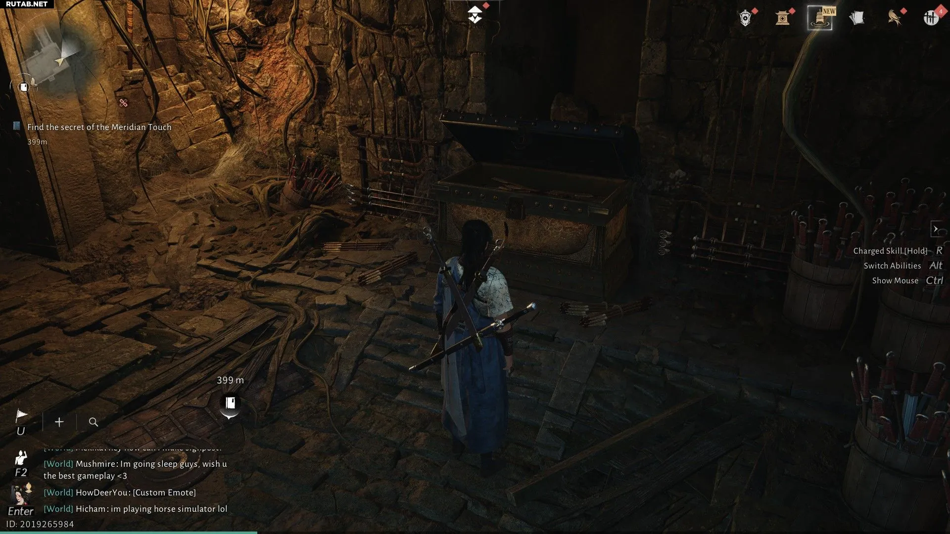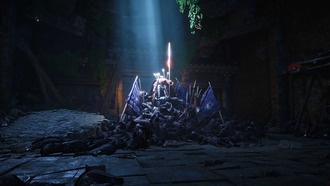 Обратите внимание на разрушенную каменную плиту рядом со входом в святилище (слева от входа). Чтобы открыть доступ к руинам, выполните Мощный удар — для этого подпрыгните и нажмите Q, чтобы обрушиться на землю. Откроется скрытый проход. Спуститесь вниз, и вы окажетесь в комнате, полной стрел, доспехов и мест для исследования.
