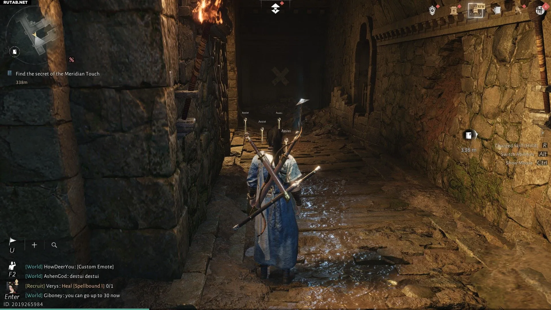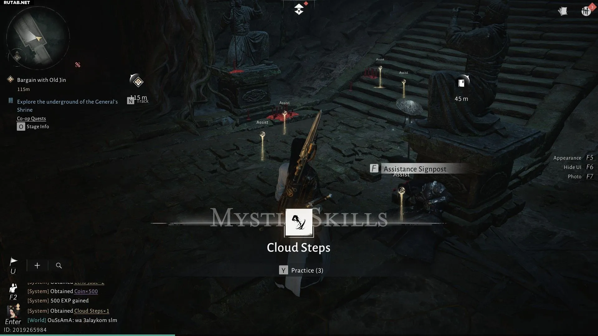 В следующей комнате вас встретят несколько противников, стоящих рядом с местом для исследования. Расправьтесь с ними и осмотрите труп, чтобы собрать информацию и получить руководство «Шаги по облакам». Это секретное мистическое умение позволяет совершать быстрый прыжок и даже планировать, преодолевая большие пропасти. В бою его можно использовать для оглушения врагов — экипируйте его в один из слотов мистических умений, затем поднимитесь по лестнице и толкните дверь, чтобы перейти в следующую зону.