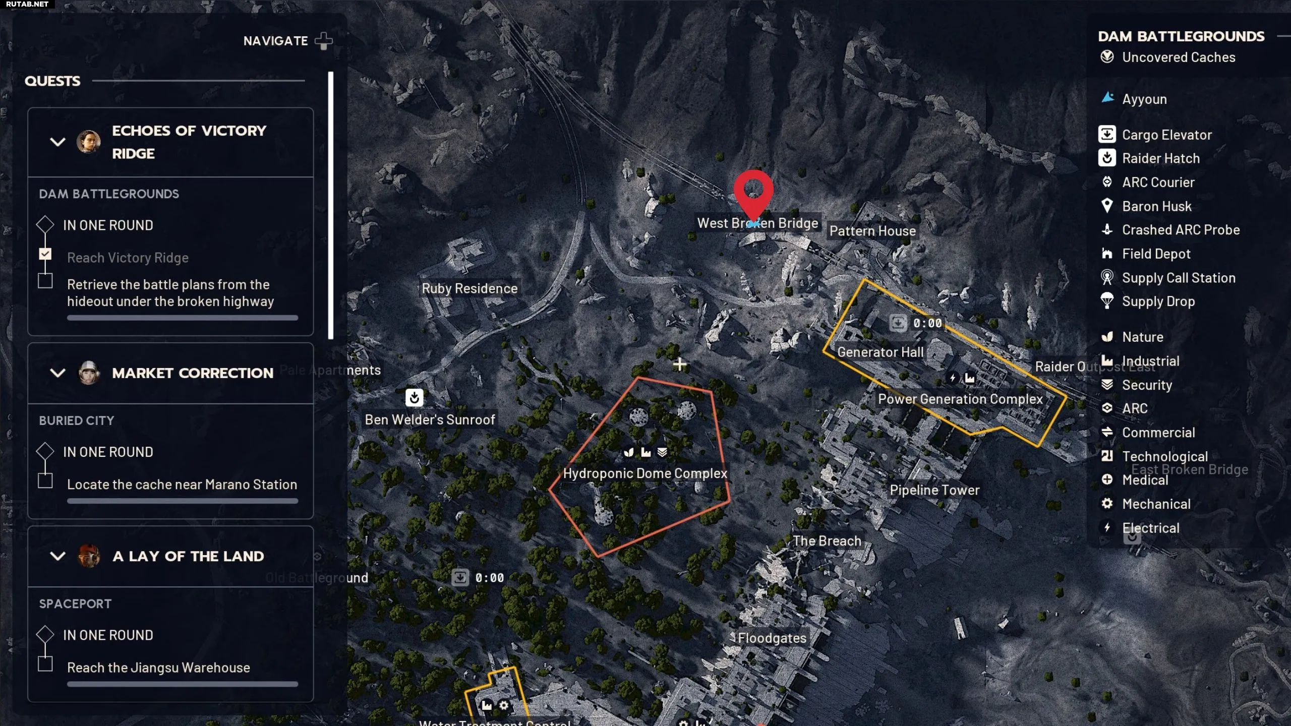 Чтобы начать квест «Эхо хребта Победы», направляйтесь к достопримечательности «Западный разрушенный мост» на карте «Поля битвы у Дамбы». Эта область находится в самой северной части карты, к северо-западу от Комплекса генерации энергии.
