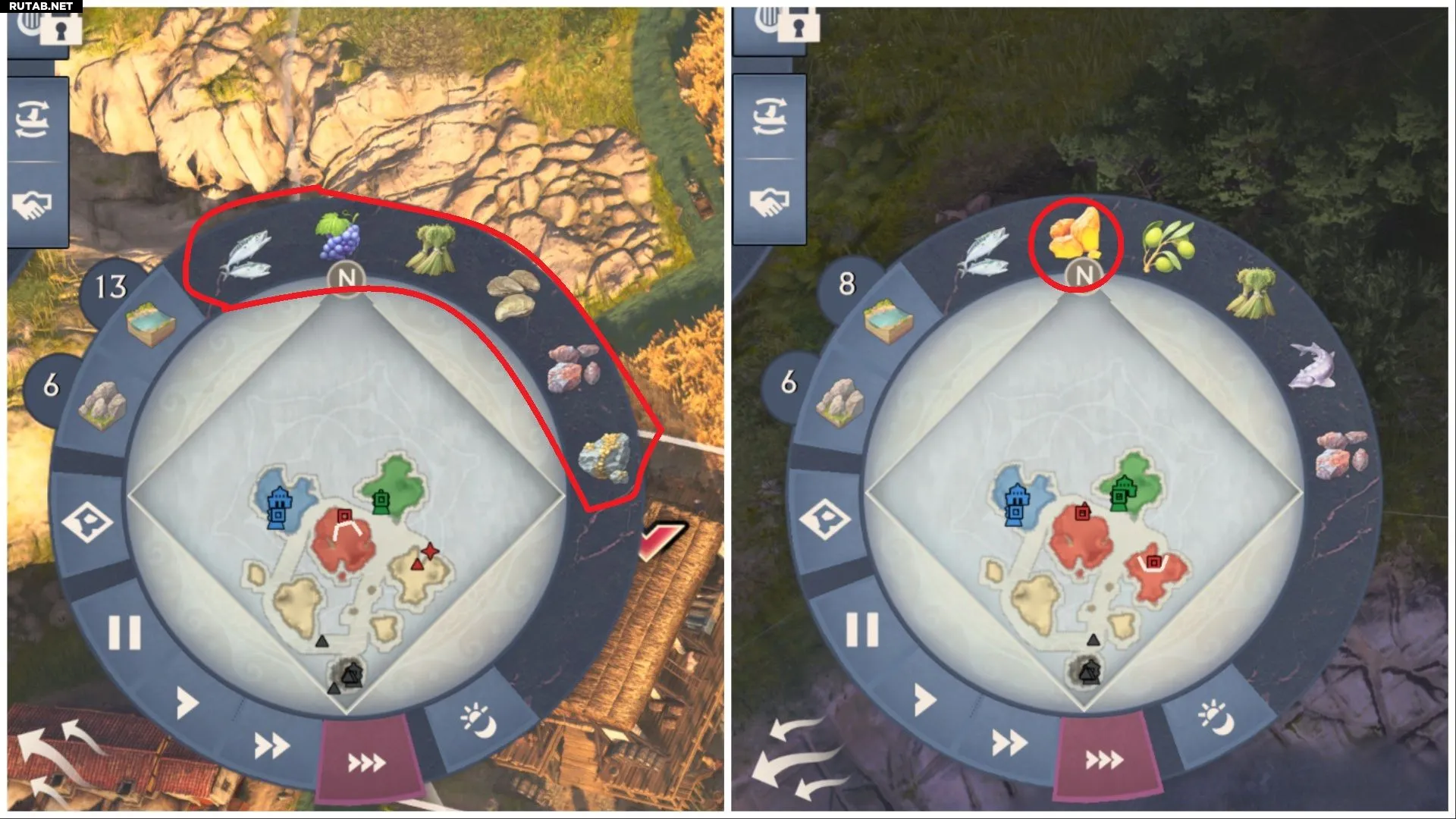Чтобы проверить наличие смолы на острове, наведите курсор на остров и посмотрите на мини-карту — все доступные ресурсы отображаются в северо-восточной части круга карты. Если на вашем острове нет смолы, придется торговать или основать новое поселение на другом острове.